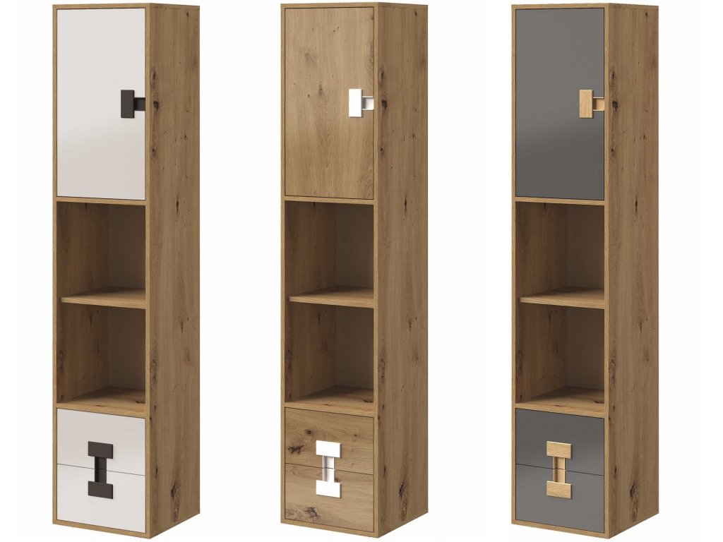 - dveře: bílý lesk, dub artisan lesk, šedý lesk
