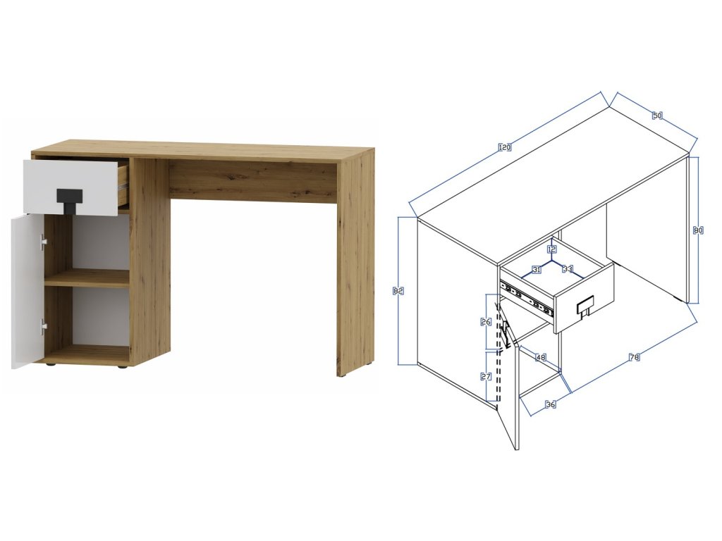 1x Psací stůl Index 10 - 120 x 82 x 50 cm