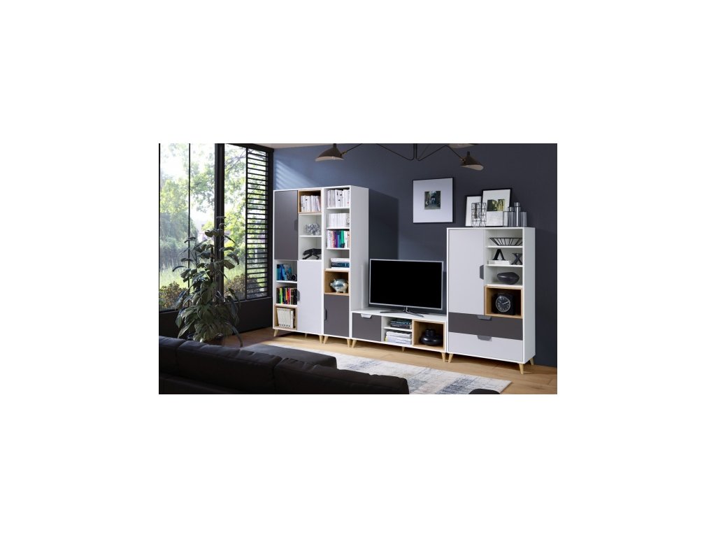 bílý mat + grafit + šedá + dub lefkasRozměry jednotlivých dílů (šířka/výška/hloubka):