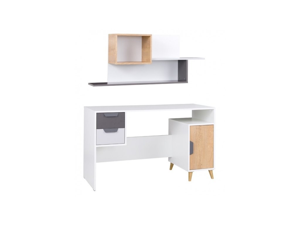 Kolekce dětského pokoje Joker je moderní nábytek charakteristický především svými nožkami. Tento dětský sektor, který má korpus v bílé barvě, je doplněn o odstín šedé, grafit a dub lefkas. Pro inspiraci jsme připravili několik sestav, avšak komponenty je možné zakoupit i jednotlivě, takže můžete vytvořit dětský pokoj dle své vlastní představy. Nábytek je vyroben z kvalitního lamina a odolnost při každodenním použití zajišťují ABS hrany.