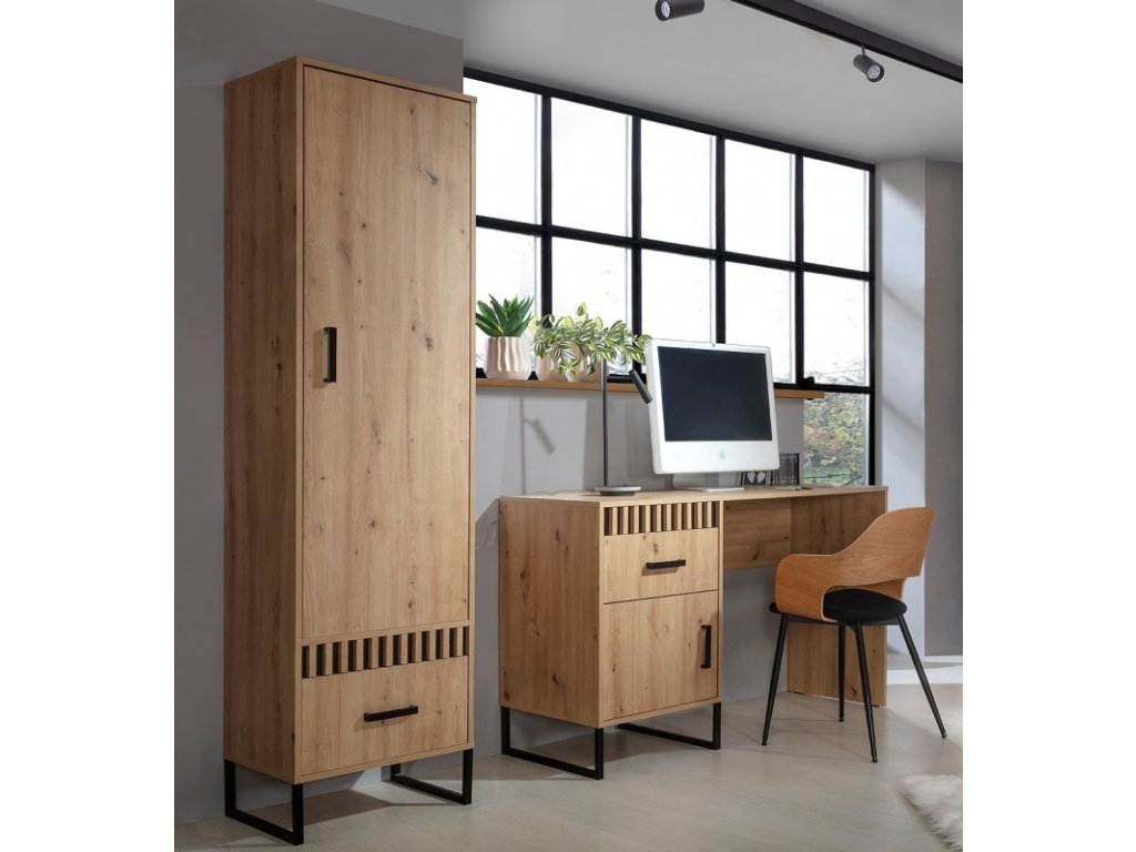 Moderní, zajímavý a vkusný nábytek, který zaujme na první pohled svým provedením. Atraktivní lamelové lišty a kovové nohy dodají nábytku nevšední vzhled a eleganci. Díky kombinaci různých dílů si můžete sestavit pokoj přímo na míru a přesně podle Vašich představ a přání. Jednoduché a velmi příjemné provedení se krásně sladí s ostatními bytovými doplňky a Vy se tak budete v interiéru cítit velmi dobře.