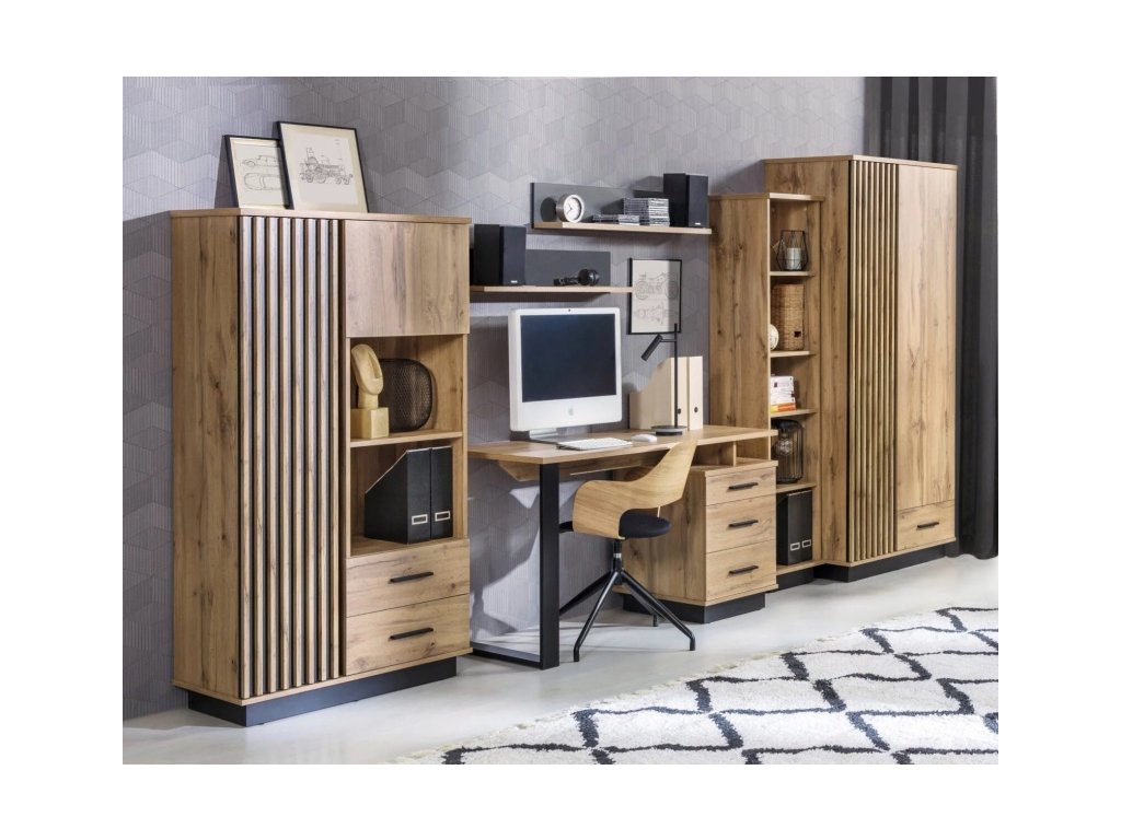 Elegantní sektor Lamelo vynikne především moderním a zajímavým provedením. Netradiční barevná kombinace dubu a černé dodá interiéru trendy vzhled. Nábytek je velmi praktický, atraktivní a zajímavý. Lamely dodávají nábytku dokonalý styl a kouzlo. Velký výběr dílů, díky kterým sestavíte obývací pokoj, ložnici nebo dětský/studentský pokoj.
