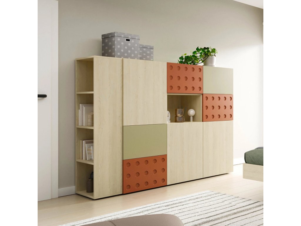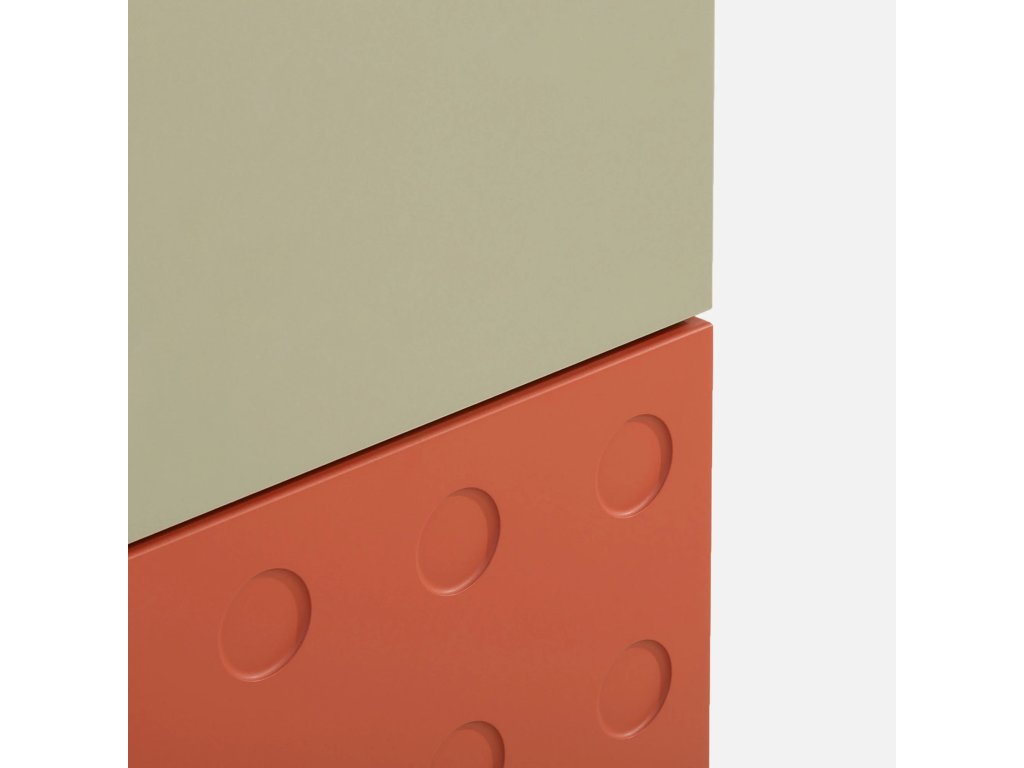 Kolekce vyniká svým velmi zajímavým barevným provedením, které Vás nadchne na první pohled. Čela jsou zdobena jemným kruhovým reliéfem, který zaujme především malé děti. Nábytek vnese do interiéru útulnou atmosféru a čistotu. Velmi dobře se kombinuje s ostatními bytovými doplňky a Vaše ratolesti se tak budou cítit příjemně a bezpečně, jak při hraní, učení nebo lenošení.