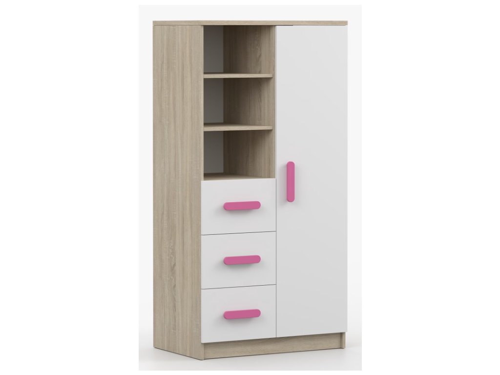 korpus dub sonoma, dvířka bílá + barevná úchytka