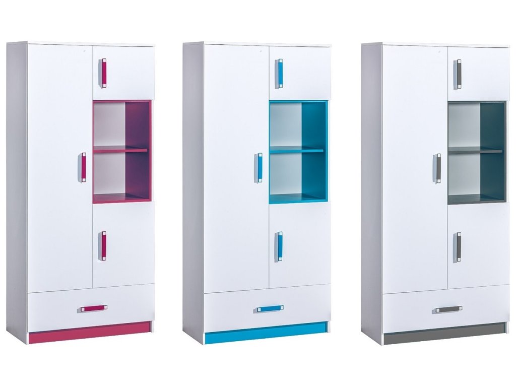 korpus: bílá + dvířka: bílá + dodatky: tyrkys