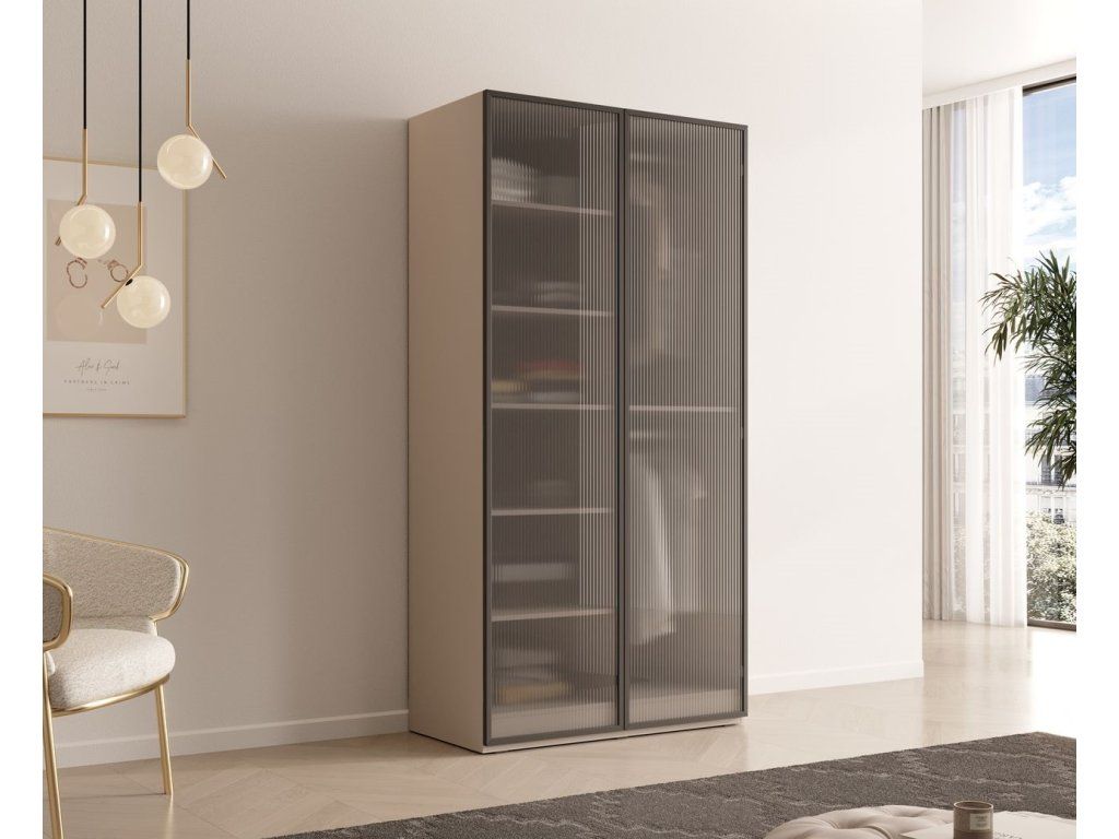 Kolekce SANDBOX představuje moderní a vysoce variabilní systém šatních skříní, který sází na minimalistický design, tmavé korpusy a kombinaci různých textur předních ploch. Systém je unikátní možností výběru ze čtyř různých stylů dveří, které zcela změní vzhled skříně. Skříně jsou modulární. Můžete je řadit vedle sebe a kombinovat různé typy dveří (např. kombinace dřevěného dekoru Sento a skla Antisol). Jako volitelné příslušenství je k dispozici LED osvětlení, které vynikne zejména u prosklených variant (Antisol/Flutes). Pokud chcete, aby místnost působila luxusně, doporučuji kombinaci dvou plných skříní (Nova/Sento) po stranách a jedné prosklené (Flutes) uprostřed s LED podsvícením.
