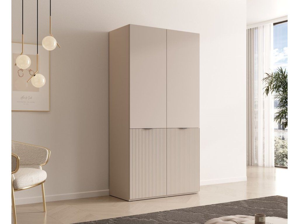 Kolekce SANDBOX představuje moderní a vysoce variabilní systém šatních skříní, který sází na minimalistický design, tmavé korpusy a kombinaci různých textur předních ploch. Systém je unikátní možností výběru ze čtyř různých stylů dveří, které zcela změní vzhled skříně. Skříně jsou modulární. Můžete je řadit vedle sebe a kombinovat různé typy dveří (např. kombinace dřevěného dekoru Sento a skla Antisol). Jako volitelné příslušenství je k dispozici LED osvětlení, které vynikne zejména u prosklených variant (Antisol/Flutes). Pokud chcete, aby místnost působila luxusně, doporučuji kombinaci dvou plných skříní (Nova/Sento) po stranách a jedné prosklené (Flutes) uprostřed s LED podsvícením.