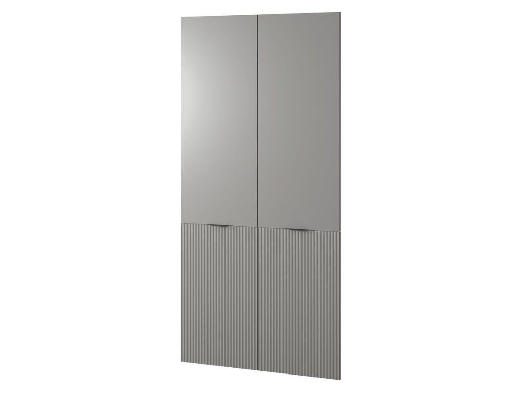 SENTO: Kombinace hladké horní části a spodní části v dekoru světlého dřeva s vertikálním drážkováním.
