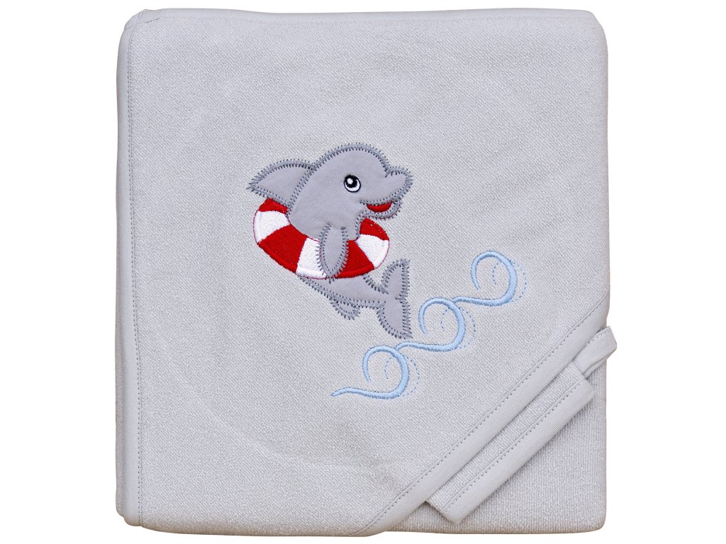 Froté ručník - Scarlett delfín s kapucí - šedá