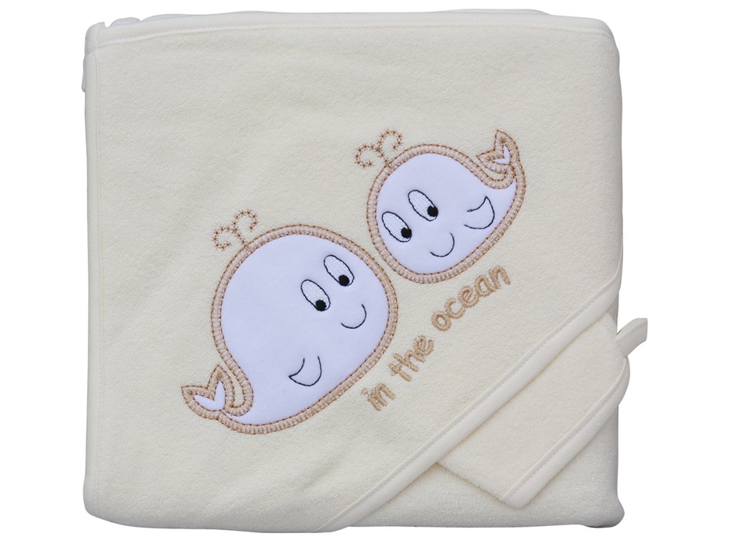 Froté ručník - Scarlett velryby s kapucí - béžová