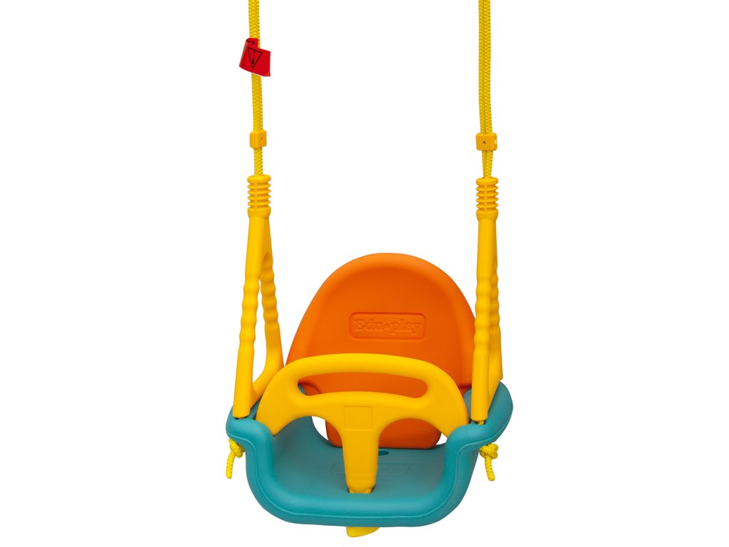 Barevná houpačka je moderní plastová houpačka vhodná pro děti až do 30 Kg. Díky unikátnímu řešení se mohou houpat malé děti. Houpačka má bezpečnostní oporu zad a také ochranný rám před dítětem. Zádová opěrka má 2 pozice pro co nejbezpečnější posez dítěte. Dětem přizpůsobíte houpačku tak, že snížíte lana. Větší děti se mohou houpat jen na sedáku s opěradlem nebo bez opěradla. Délka houpačky je nastavitelná. Sedátko je dostatečně široké pro bezpečné usazení dítěte.
