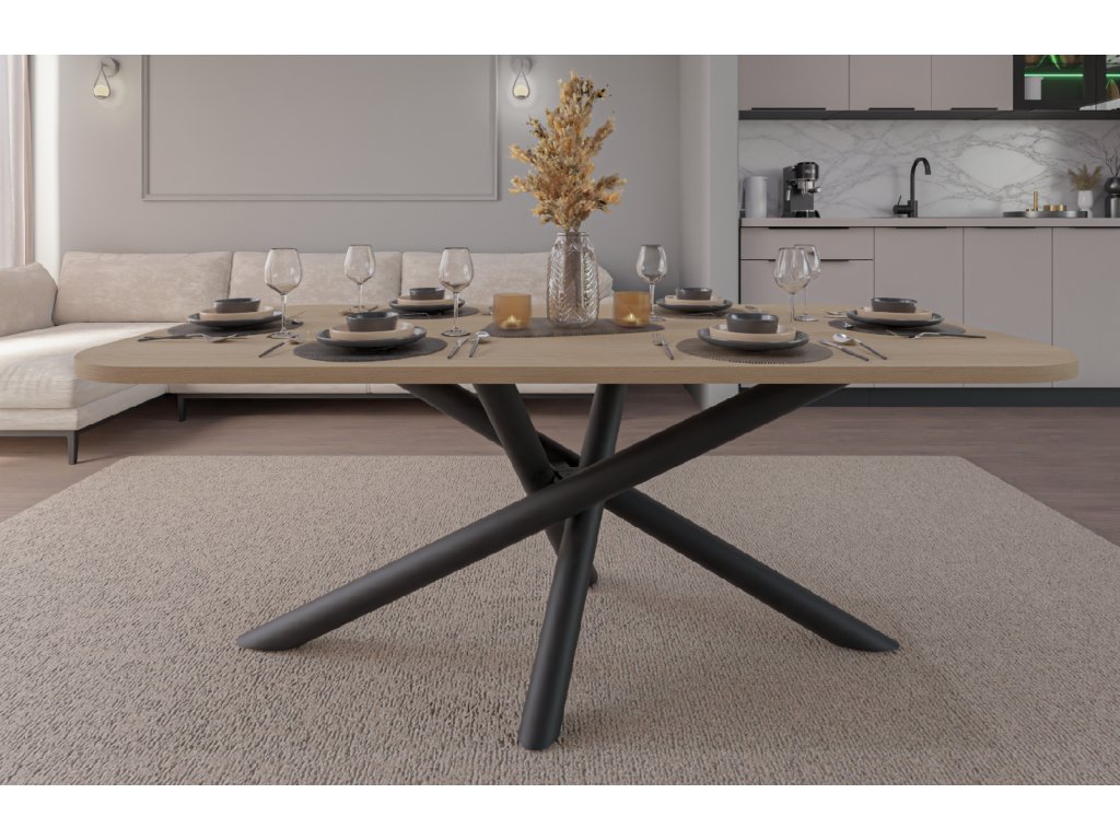 Jídelní stůl Osman je vyrobený v nadčasovém stylu, který se hodí do každé moderní domácnosti. Deska stolu je z lamina tl.15 mm, nohy jsou černé kovové ve stylu "pavouk". Stůl se skvěle hodí nejen do jídelny, ale i do kuchyně nebo do jídelního koutu v obývacím pokoji. Stůl je dodávaný v demontu. Součástí balení je montážní návod včetně všech spojovacích prvků.