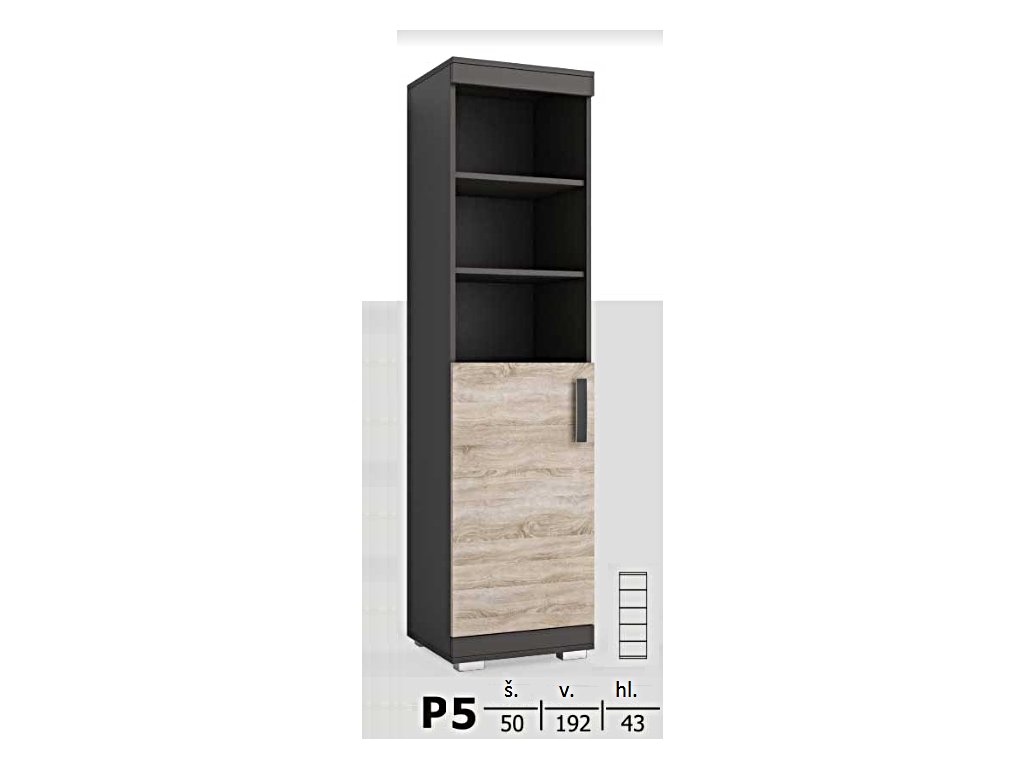 Moderní, univerzální nábytkový systém, kde si můžete vybírat z velkého množství jednotlivých dílů. Kolekce je vyrobena z dřevotřískové laminované desky o tloušťce 18 mm. Ze sektoru můžete sestavit obývací stěnu, studentský pokoj, jídelnu, pracovnu nebo předsíňovou stěnu. Lze zvolit jiné barevné provedení korpusu, dvířek a lišty. Nábytek Petr "P" zajistí pohodlný i praktický interiér a útulné a bezpečné prostředí ve Vašem domově.