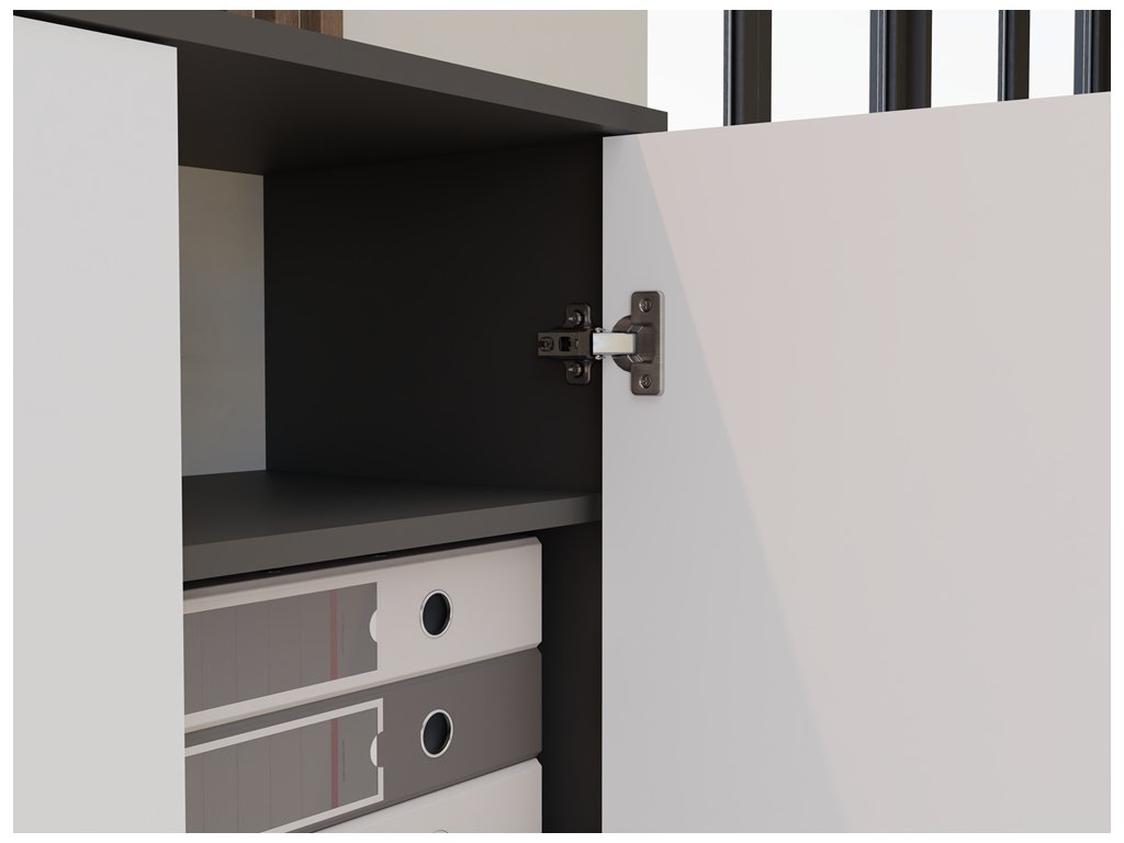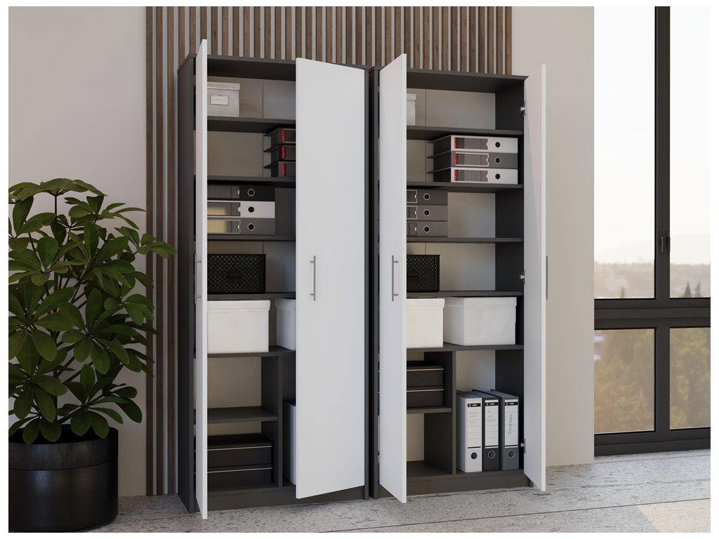 Kancelářská skříň Olina v moderním designu je praktický kus nábytku, který bude fungovat všude tam, kde ho budete potřebovat. Najde si své místo jak v pracovně, ateliéru, tak i v obývacím nebo dětském pokoji. Skříň je vyrobena z nejkvalitnější laminované desky odolné proti poškrábání a vlhkosti, hrany jsou povrchově upraveny ABS.