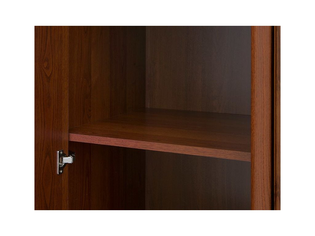 Součástí vitríny jsou prosklená dvířka s policemi, sklo je tvrzené, kovová zdobená úchytka.