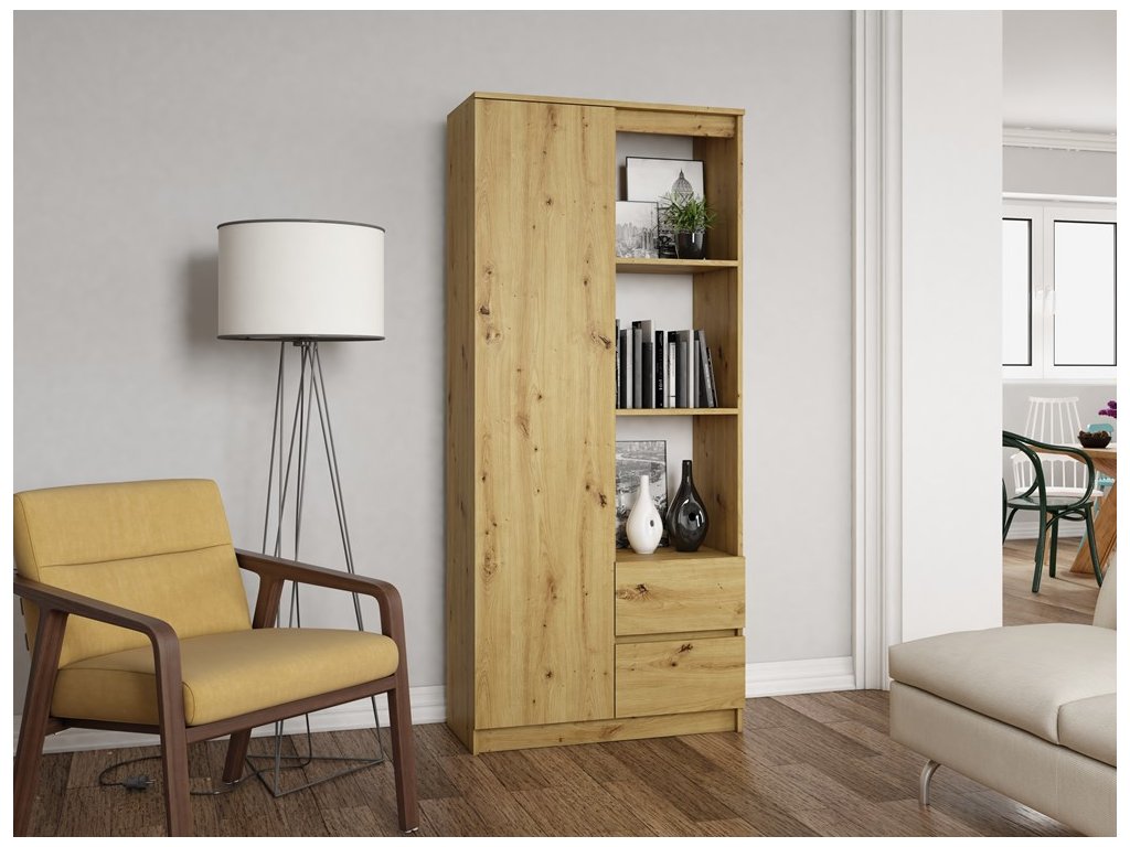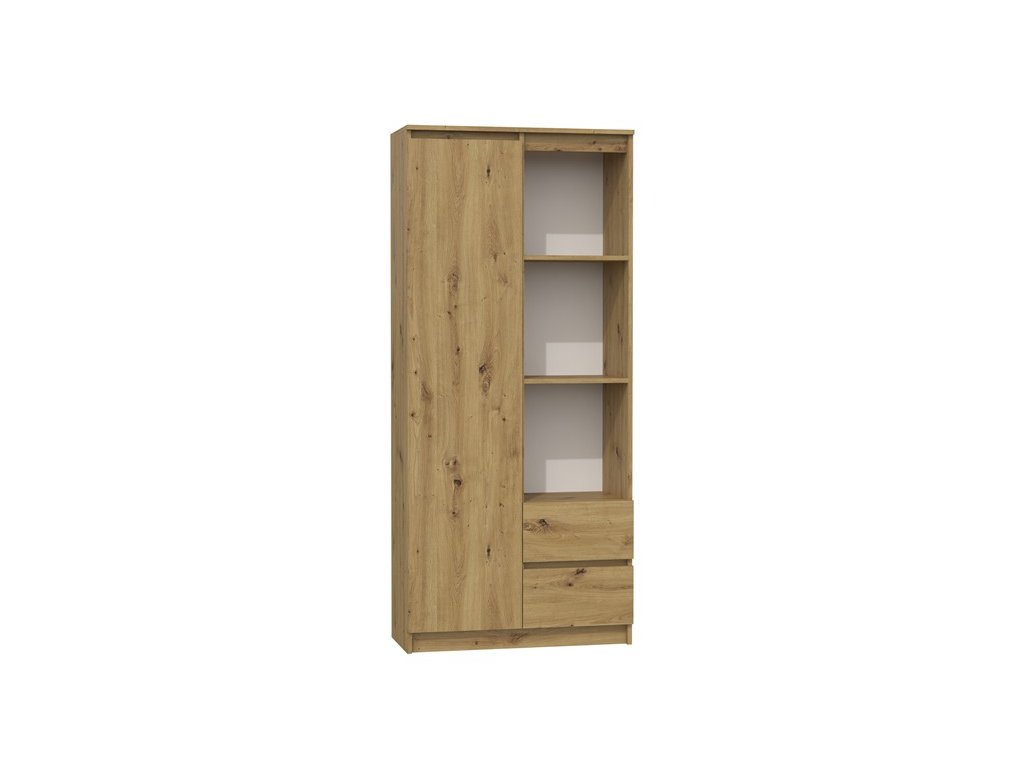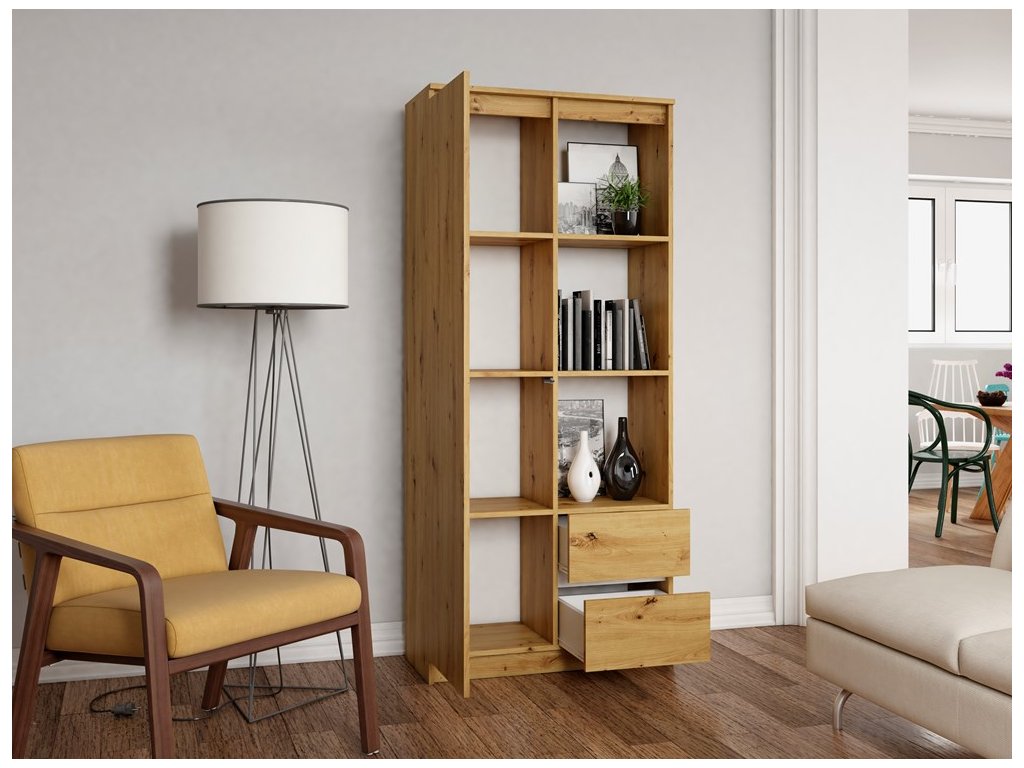 Moderní knihovna Ben v minimalistickém designu je praktický kus nábytku, který si najde své místo jak v obývacím pokoji, tak i v kanceláři nebo ateliéru. Knihovna je vyrobena z nejkvalitnější laminované desky odolné proti poškrábání a vlhkosti, hrany jsou povrchově upraveny ABS.