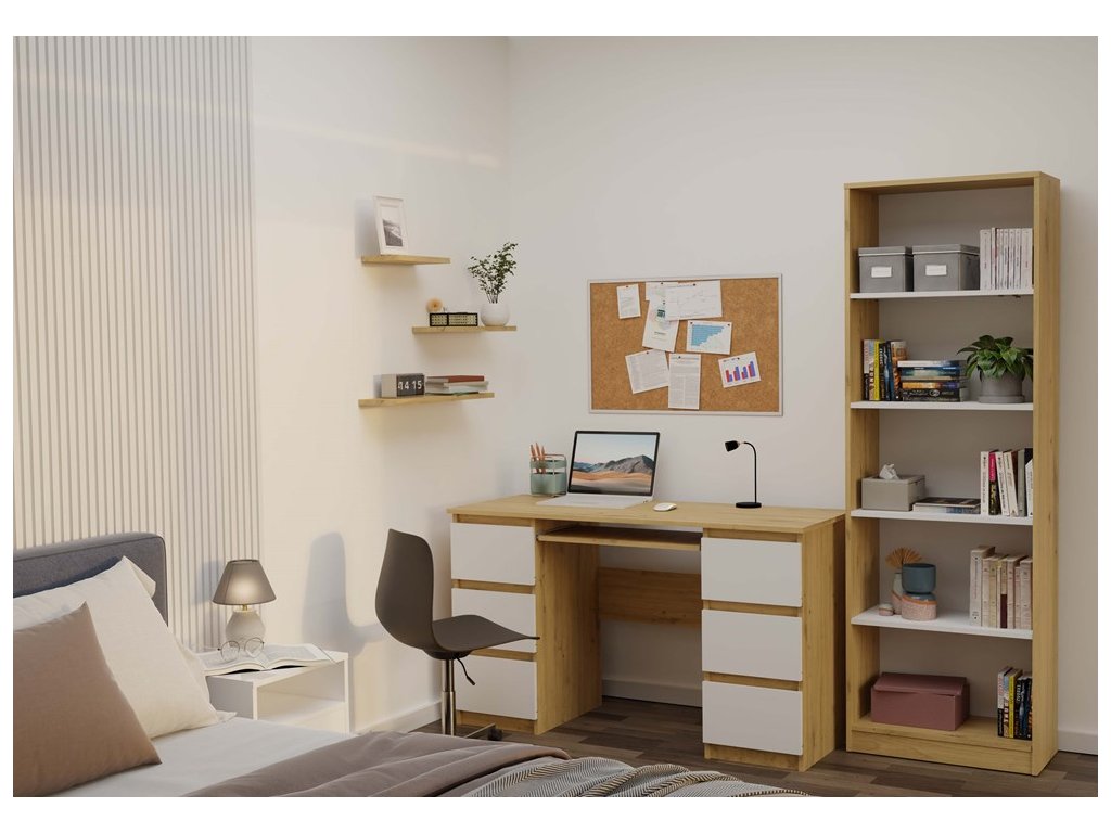 Nadčasové knihovny v trendy barvách série Malvína najdou díky své všestrannosti uplatnění jak v kanceláři, tak i v obývacích prostorách vašeho bytu. Knihovna s praktickými policemi je perfektním řešením pro ukládání knih, hraček, dekorací i firemních materiálů. Nábytek je vyrobený z pevné oboustranně laminované desky, hrany jsou povrchově upraveny ABS plastem - vyznačují se vysokou mechanickou a chemickou odolností.