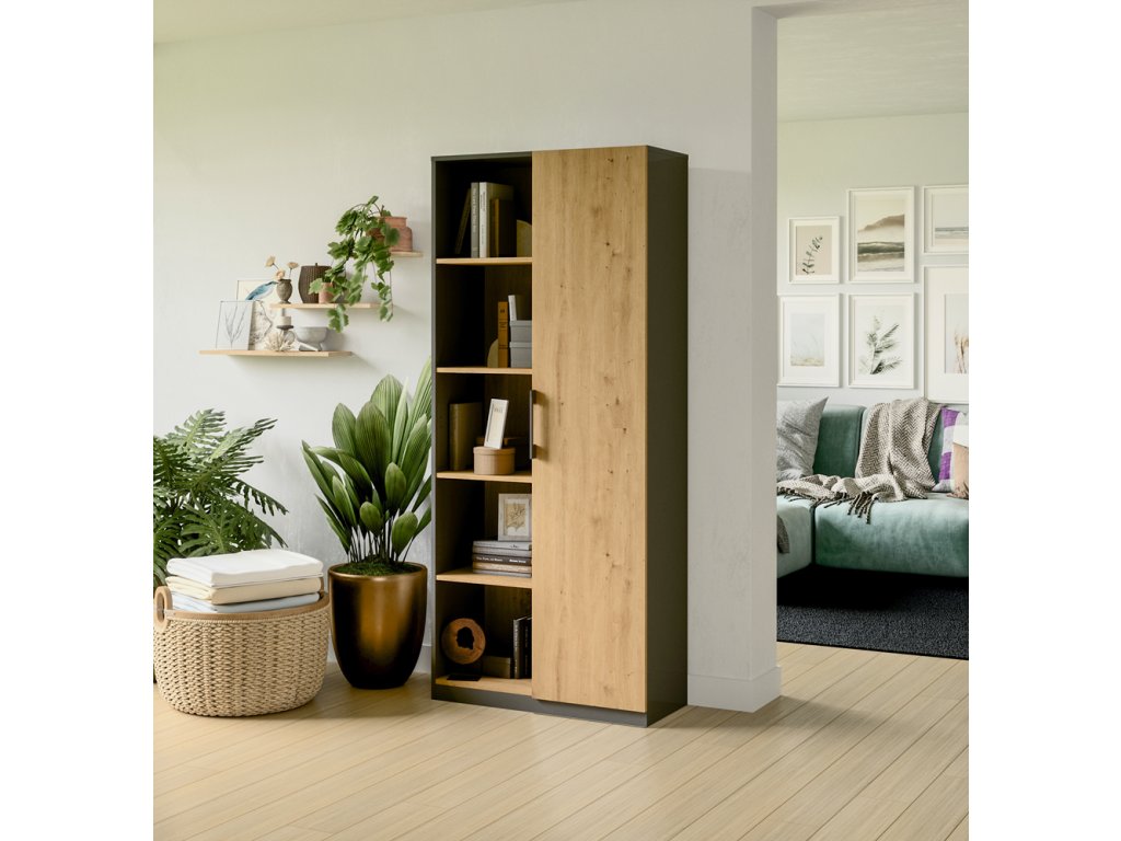 Knihovna Ridas 80 antracit/dub artisan