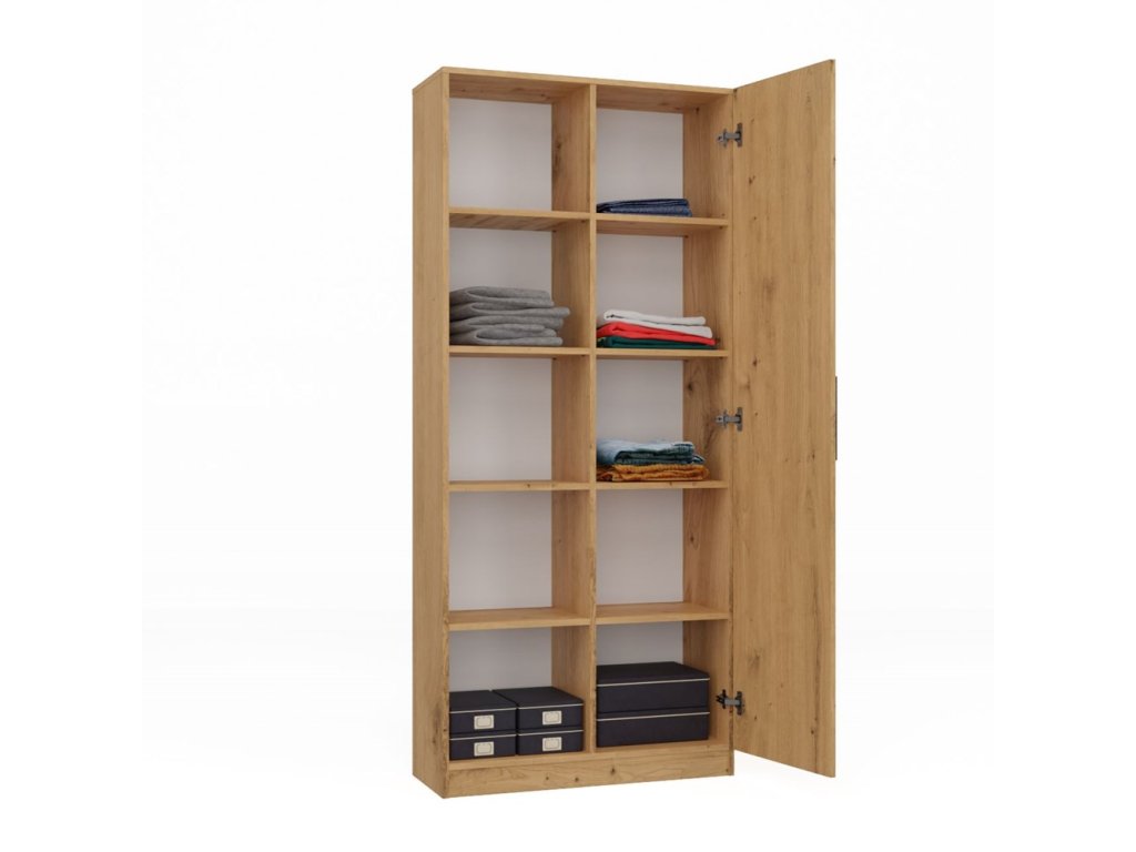 Nadčasová knihovna Ridas v minimalistickém designu je praktický kus nábytku, který si najde své místo jak v obývacím pokoji, tak i v kanceláři nebo ateliéru. Knihovna je vyrobena z nejkvalitnější laminované desky odolné proti poškrábání a vlhkosti, hrany jsou povrchově upraveny ABS.