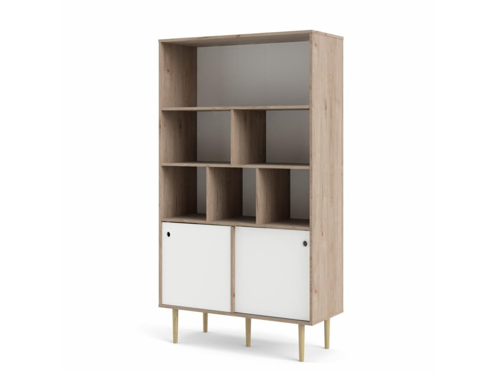 Knihovna-regál Ruby díky svému provední nabízí univerzální použití a dostatek úložného prostoru. S touto knihovnou budete mít doma přehledný a organizovaný pořádek. A pokud máte rádi retro styl, pak je tato knihovna pro Vás jako stvořená. Je zhotovená z lamina které je odolné a snadné na údržbu. Retro vzhled zdůrazňují vysoké nožky, kulaté výřezy místo úchytek a posuvné dvířka. Knihovnu nabízíme ve dvou barevných provedeních. Je dodávaná v demontu a součástí je montážní plánek včetně všech potřebných spojovacích materiálů.