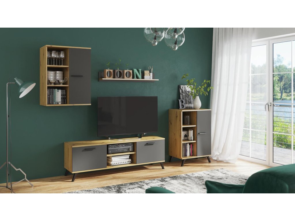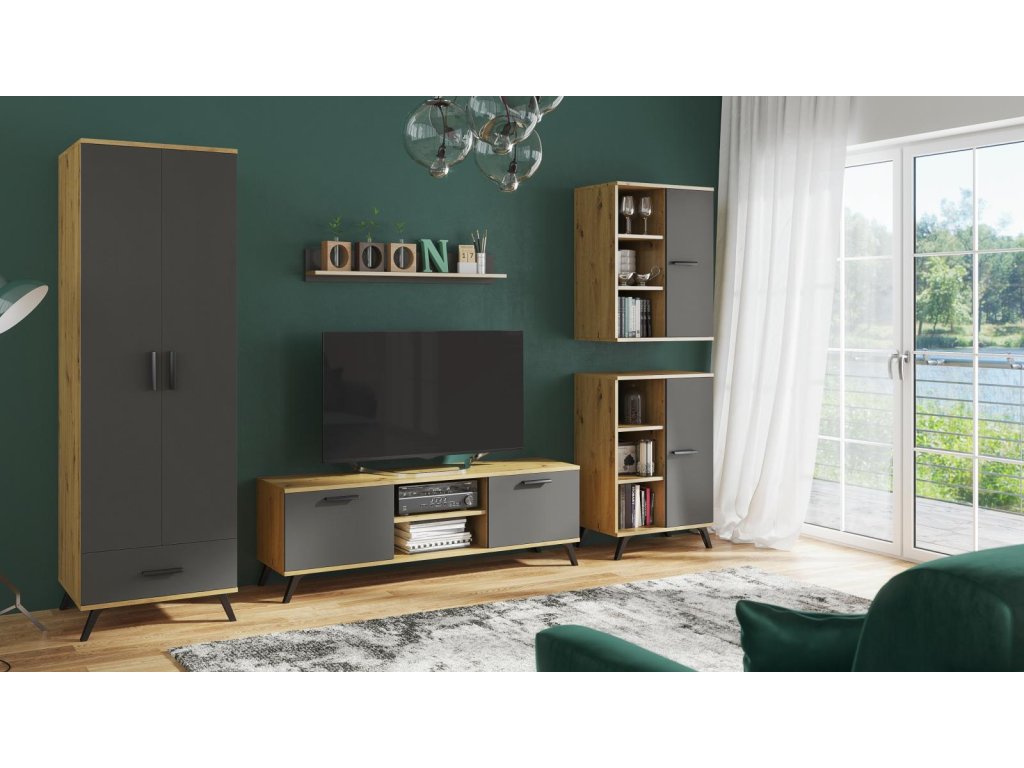 Knihovna malá Roky 2 Grafit je vyrobena z lamina v krásném dekoru grafit a dub artisan. Lamino tloušťky 18 mm je odolné a je zakončeno lištou ABS. Jistě oceníte i snadnou údržbu. Knihovna je velmi praktická, kombinace dvířek a polic pojme vše potřebné. Rukojeti v dekóru dřeva jsou vyrobeny z plastu. Je dodávána v demontu. Součástí balení je montážní návod včetně všech spojovacích prvků.