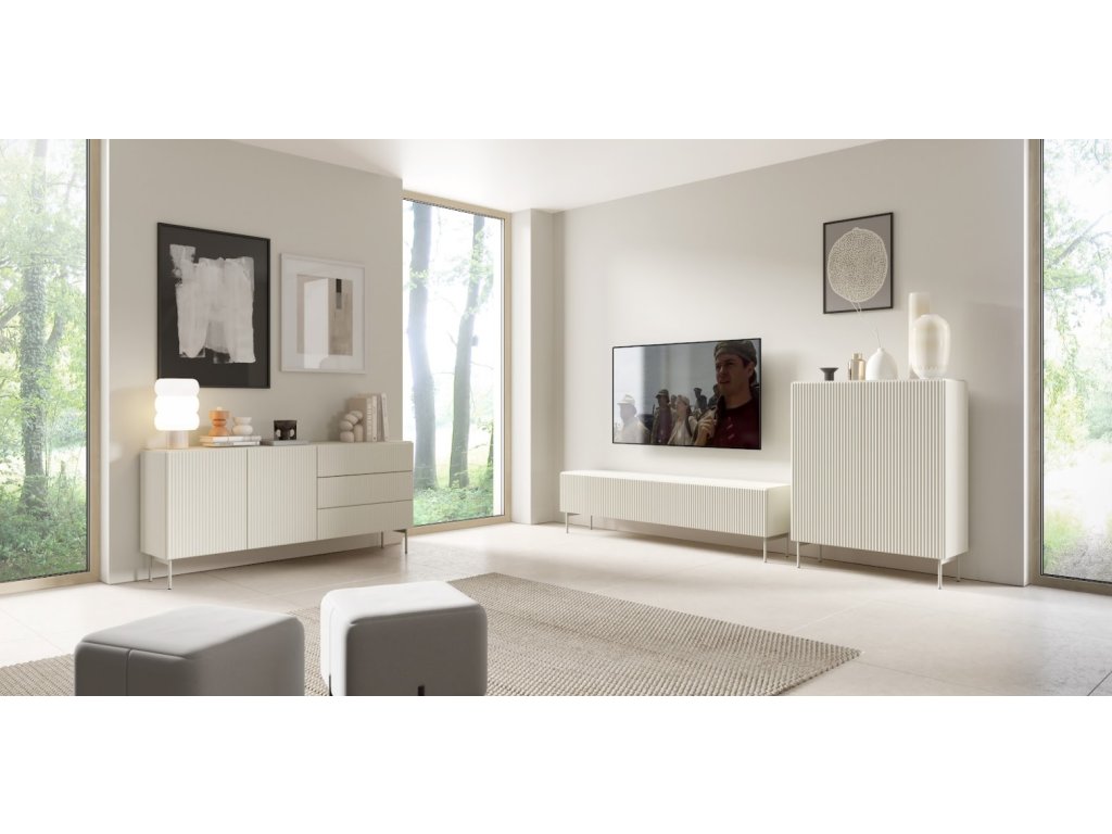 Moderní sektor Muti zaujme na první pohled svým zpracováním, designem a funkčností. Předností této řady je velmi moderní drážkování a praktické vysoké nohy, které Vám usnadní práci při úklidu. Nábytek je vyroben hlavně pro ty, kteří mají rádi jednoduchý a elegantní styl bydlení. Sektor je praktický a krásně se sladí s ostatními bytovými doplňky.