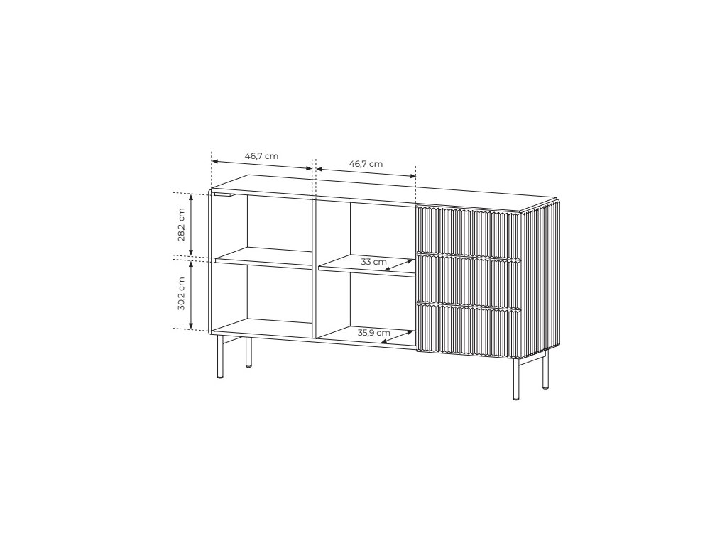 - drážkovaná MDF deska 18 mm na korpusu i na dvířkách