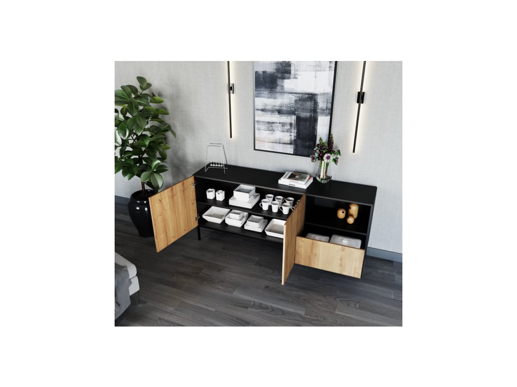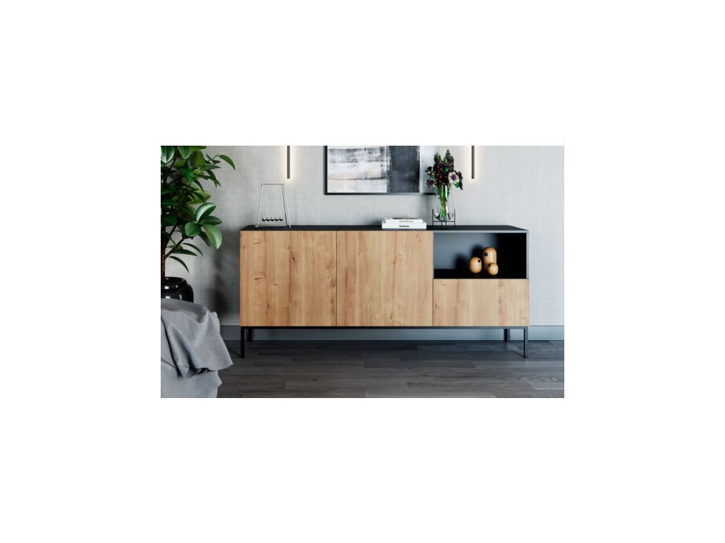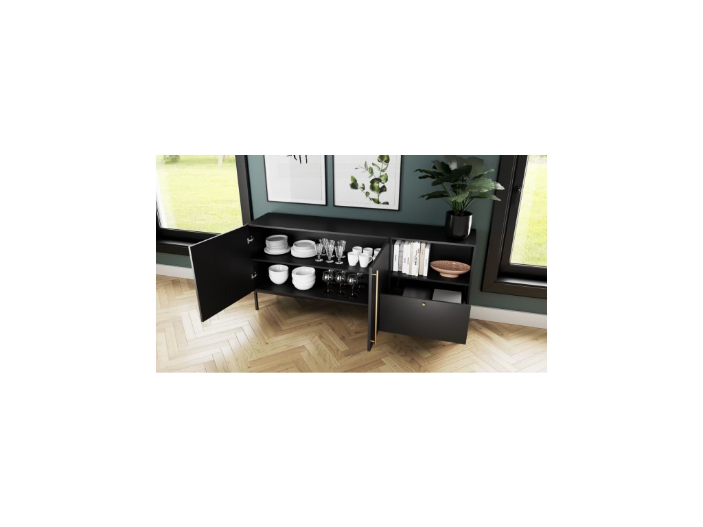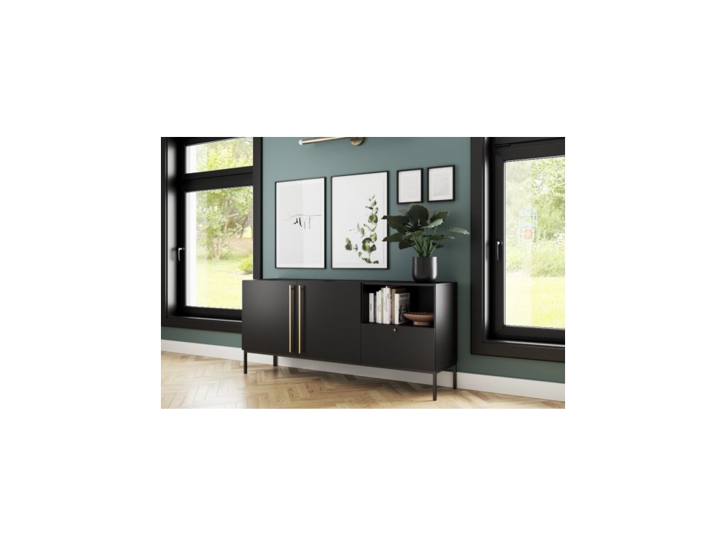 Kolekce Lanzzi kombinuje moderní vzhled s praktickými funkcemi. Nábytek je ve dvou barevných provedeních černý mat + dub artisan, nebo černý mat. Povrchová úprava v matné černé barvě s dubovým efektem odráží krásu a kresbu přírodního dřeva. Zajisté uchvátí fanoušky minimalismu. Kovové, černé, 20 cm dlouhé nohy zajišťují, že nábytek stojí stabilně. Nábytek je vybaven systémem tichého dovírání. Černá varianta nábytku má zlaté úchytky, zatím co barevná varianta černý mat s dubem artisan je vybavena bezúchytkovým systémem "push to open".