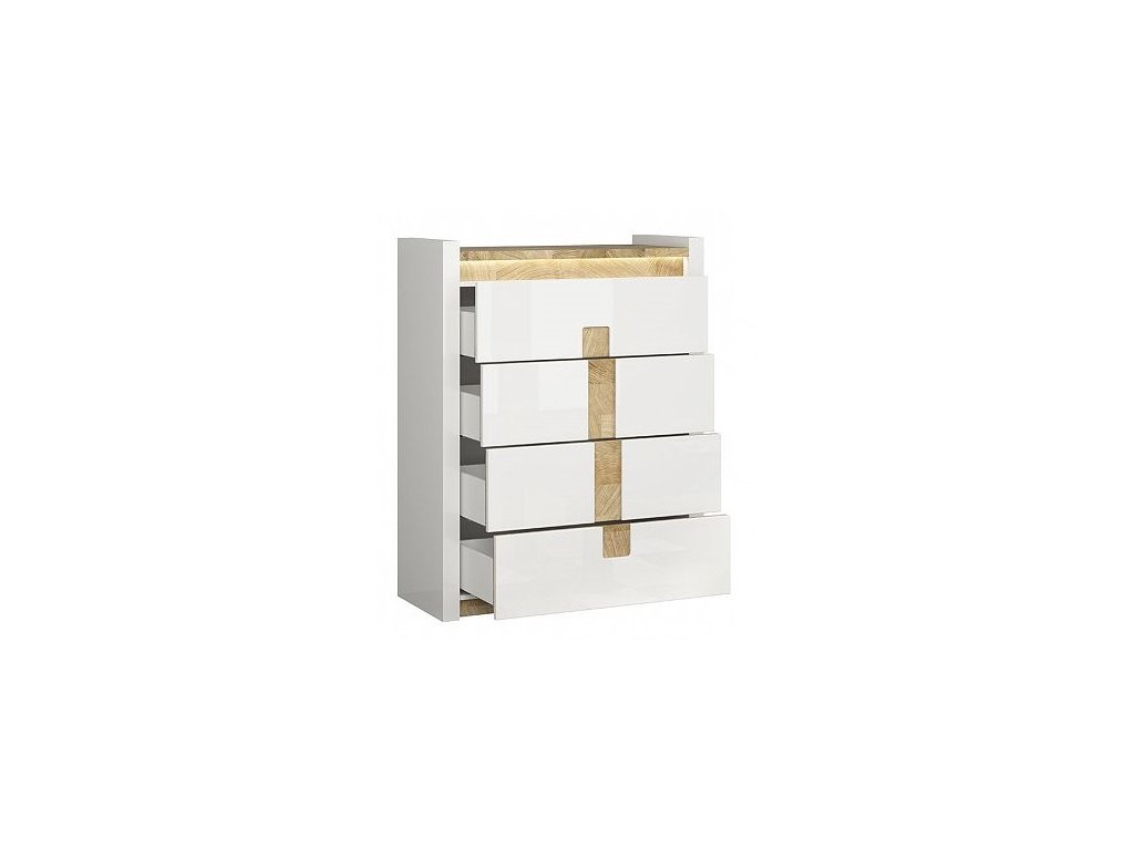 Komoda ALAMEDA KOM4S bílý lesk/dub westminster