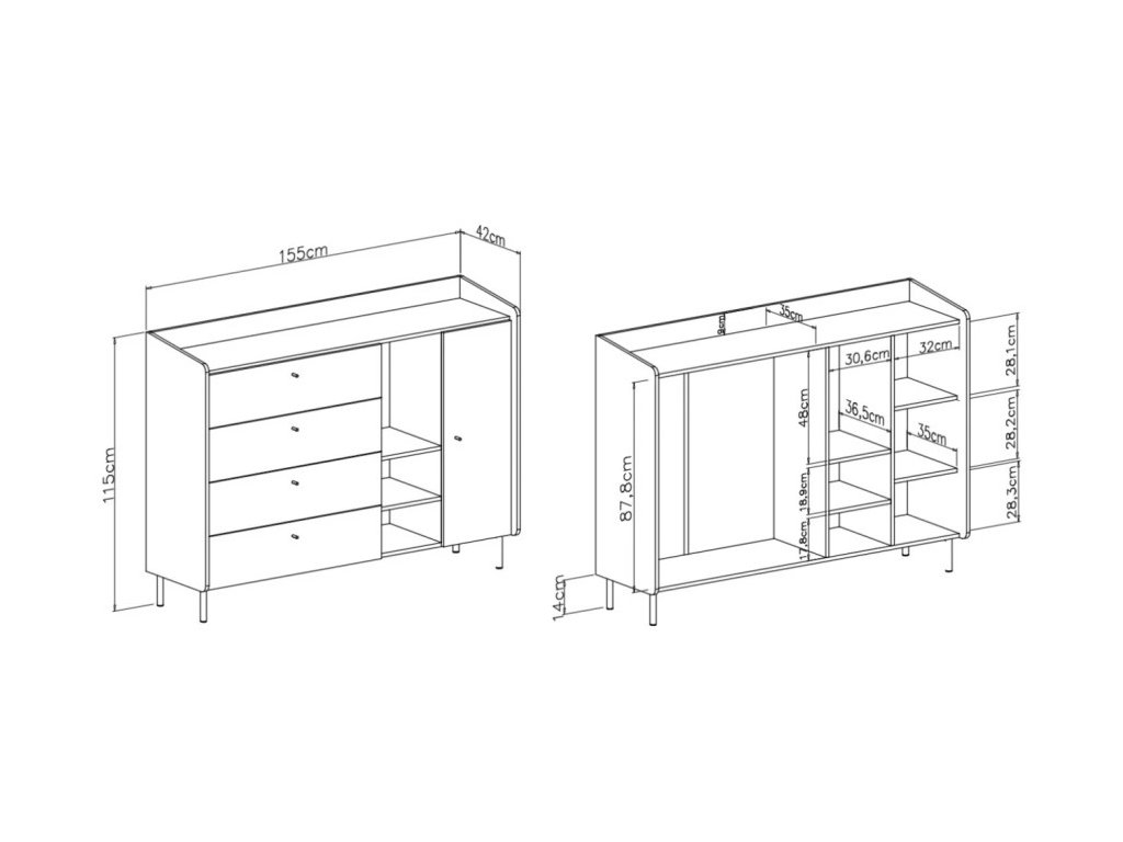 šíře 155 cm, výška 115 cm, hloubka 42 cm