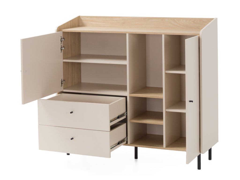 Nábytek Cosmo se vyrábí v moderním stylu. Úchytky jsou nahrazeny drážkami, které zvyšují trvanlivost a odolnost nábytku.
