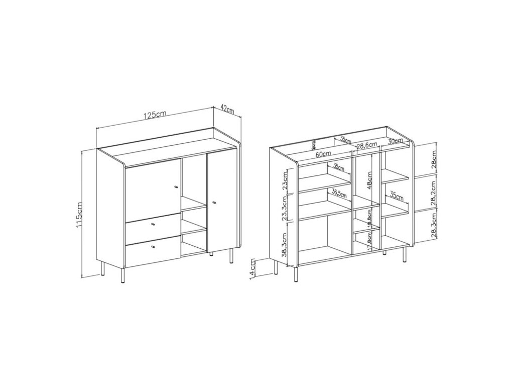 šíře 125 cm, výška 115 cm, hloubka 42 cm