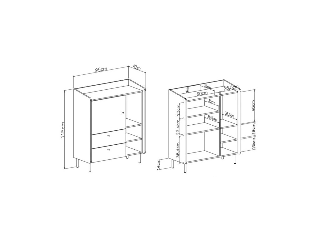 šíře 95 cm, výška 115 cm, hloubka 42 cm