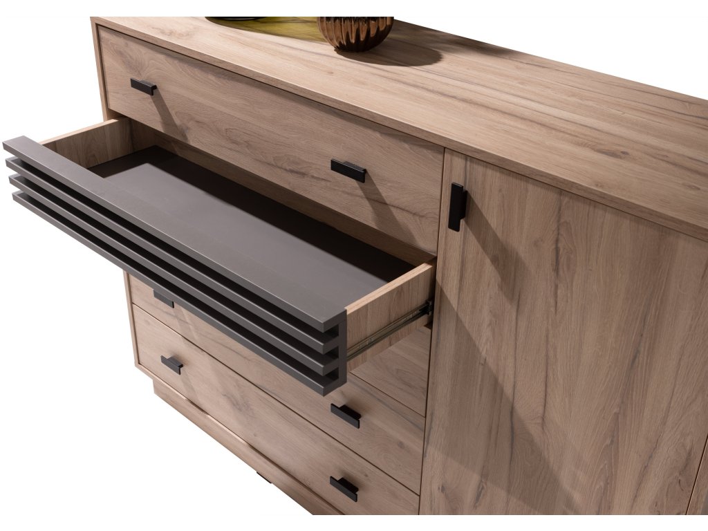 Sektorový nábytek Allmo, je jednoduchý, atraktivní a trendy. Velmi originální systém, který vyniká především kombinací světlého dřeva a dekorativních lamel. Lamely dodávají nábytku kouzlo a dokonalý styl, který ocení jak dospělý, tak i děti. Nábytek lze použít v obývacím nebo dětském pokoji.