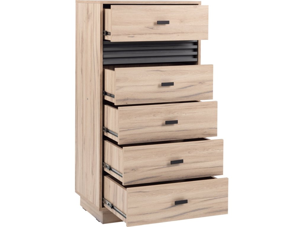 Sektorový nábytek Allmo, je jednoduchý, atraktivní a trendy. Velmi originální systém, který vyniká především kombinací světlého dřeva a dekorativních lamel. Lamely dodávají nábytku kouzlo a dokonalý styl, který ocení jak dospělý, tak i děti. Nábytek lze použít v obývacím nebo dětském pokoji.