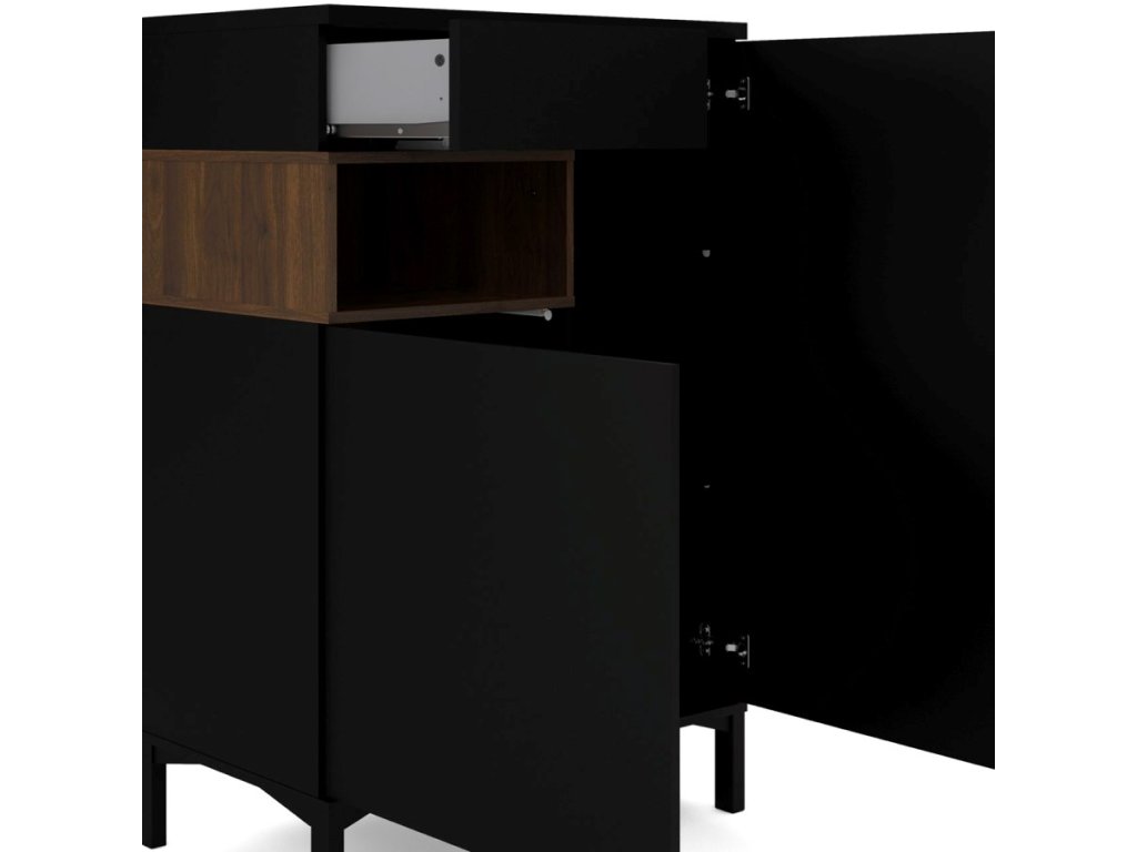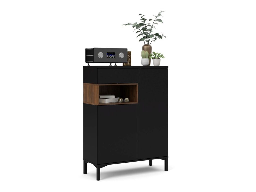 Komoda Atrei potěší nejen milovníky skandinávského designu. Je navržena a vyrobena v nadčasovém designu, který se hodí do každého moderního interiéru. Komoda má kvalitní zpracování a je vyráběna v souladu s ohledy na životní prostředí a navíc je praktická a funkční. Díky svému provedení poskytuje dostatek úložného prostoru. Velmi zajímavá a netypická je kombinace černé nebo bílé barvy s dekorem dřeva. Komodu můžete doplnit dalšími prvky Atrei ve stejném designu, nebo si ji můžete objednat i samostatně a doplnit tak stávající interiér. Cena je uvedena pouze za komodu, která je dodávána v demontu. Vyobrazené doplňky a dekorace nejsou v ceně.