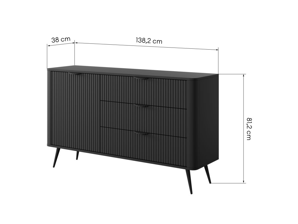 Sektor Lante je velmi moderní, elegantní a originální. Nábytek v černém provedení zapadne do jakéhokoliv interiéru, dobře se sladí s ostatními bytovými doplňky, jeho jednoduché a decentní provedení vnese do místnosti klid a pohodu. Zaoblené hrany nábytku i vkusně drážkovaná čela jsou naprostou harmonií v každém interiéru.