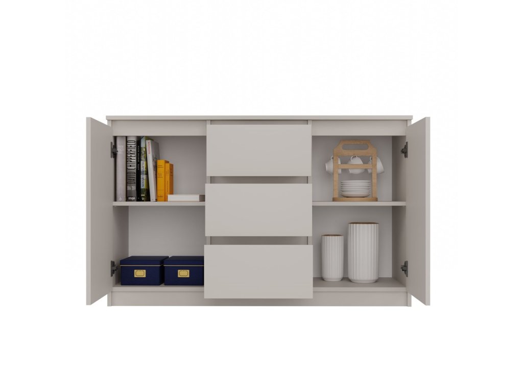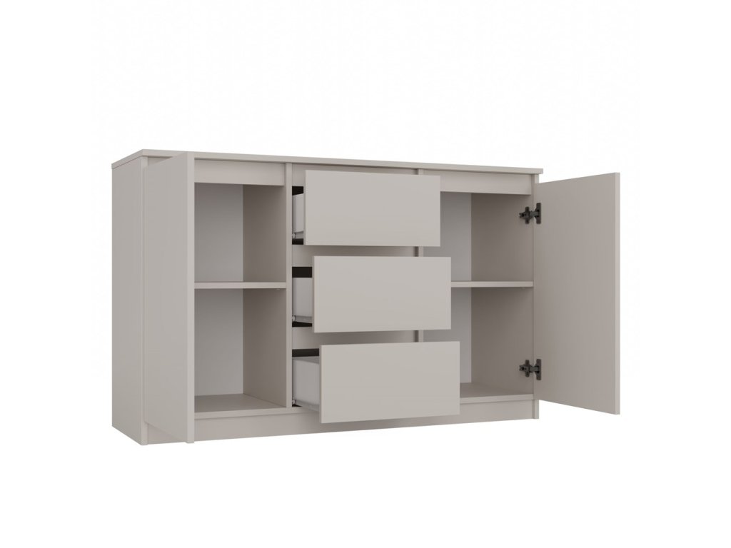 Funkční a prostorná komoda Malvína v nadčasovém elegantním designu ozdobí každý prostor vašeho domu či bytu. Pohodlná bezúchytková čela zásuvek a dvířka podtrhnou moderní charakter interiéru. Komoda je vyrobená z kvalitního 16 mm lamina, hrany jsou zakončené vysoce odolným ABS materiálem.