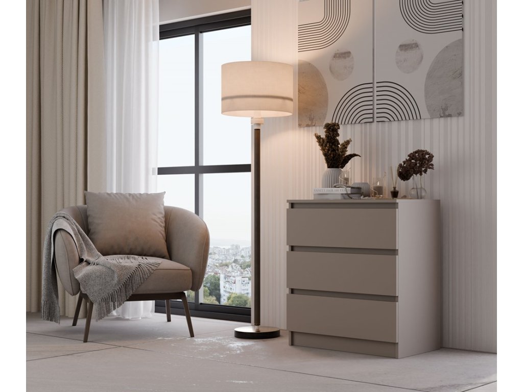 Nadčasová komoda Malvína v minimalistickém designu nabízí díky svému provedení dostatek úložného prostoru a univerzální použití v kterékoliv místnosti vašeho bytu či domu. Bezúchytková čela zásuvek zajistí pohodlné používání a dokreslí moderní a útulný charakter vašeho interiéru. Komoda je vyrobena ze snadno udržovatelného lamina, hrany jsou zakončené vysoce odolným ABS materiálem.