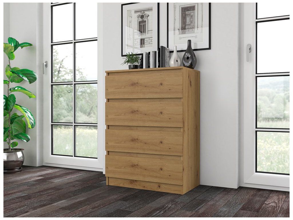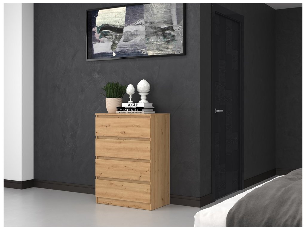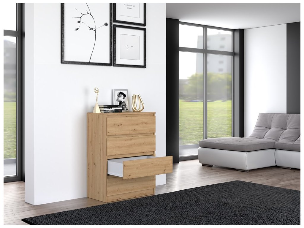Nadčasová komoda Malvína v minimalistickém designu nabízí díky svému provedení dostatek úložného prostoru a univerzální použití v kterékoliv místnosti vašeho bytu či domu. Bezúchytková čela zásuvek zajistí pohodlné používání a dokreslí moderní a útulný charakter vašeho interiéru. Komoda je vyrobena ze snadno udržovatelného lamina, hrany jsou zakončené vysoce odolným ABS materiálem.