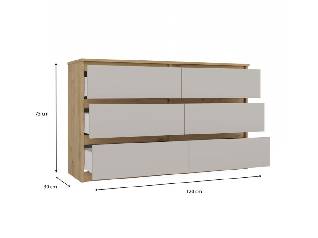 Nadčasová komoda Malvína v minimalistickém designu nabízí díky svému provedení dostatek úložného prostoru a univerzální použití v kterékoliv místnosti vašeho bytu či domu. Bezúchytková čela zásuvek zajistí pohodlné používání a dokreslí moderní a útulný charakter vašeho interiéru. Komoda je vyrobena ze snadno udržovatelného lamina, hrany jsou zakončené vysoce odolným ABS materiálem.