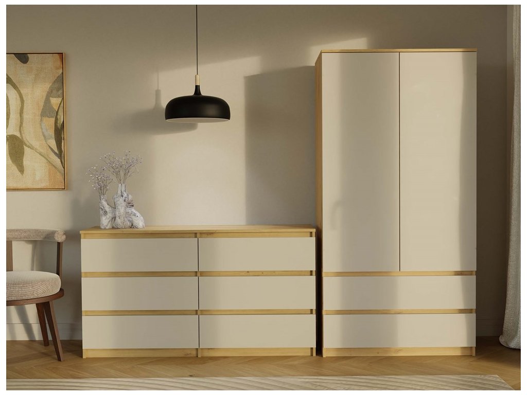 Nadčasová komoda Malvína v minimalistickém designu nabízí díky svému provedení dostatek úložného prostoru a univerzální použití v kterékoliv místnosti vašeho bytu či domu. Bezúchytková čela zásuvek zajistí pohodlné používání a dokreslí moderní a útulný charakter vašeho interiéru. Komoda je vyrobena ze snadno udržovatelného lamina, hrany jsou zakončené vysoce odolným ABS materiálem.