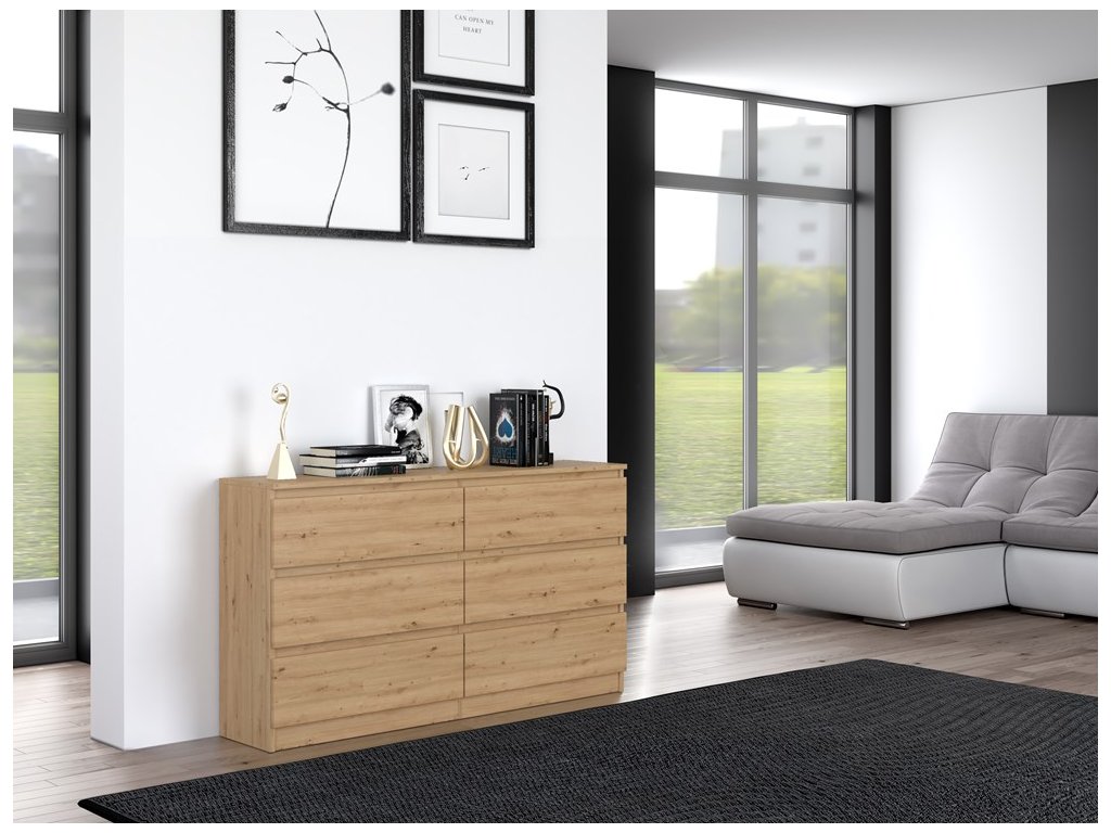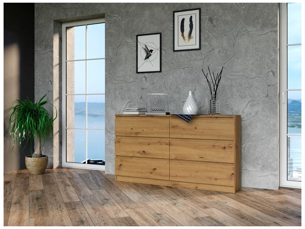 Nadčasová komoda Malvína v minimalistickém designu nabízí díky svému provedení dostatek úložného prostoru a univerzální použití v kterékoliv místnosti vašeho bytu či domu. Bezúchytková čela zásuvek zajistí pohodlné používání a dokreslí moderní a útulný charakter vašeho interiéru. Komoda je vyrobena ze snadno udržovatelného lamina, hrany jsou zakončené vysoce odolným ABS materiálem.