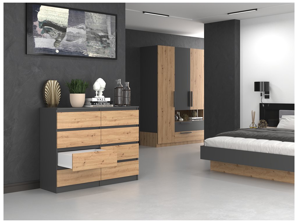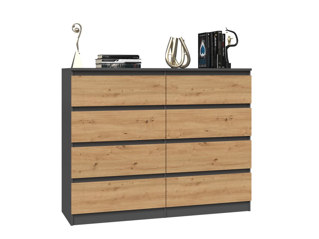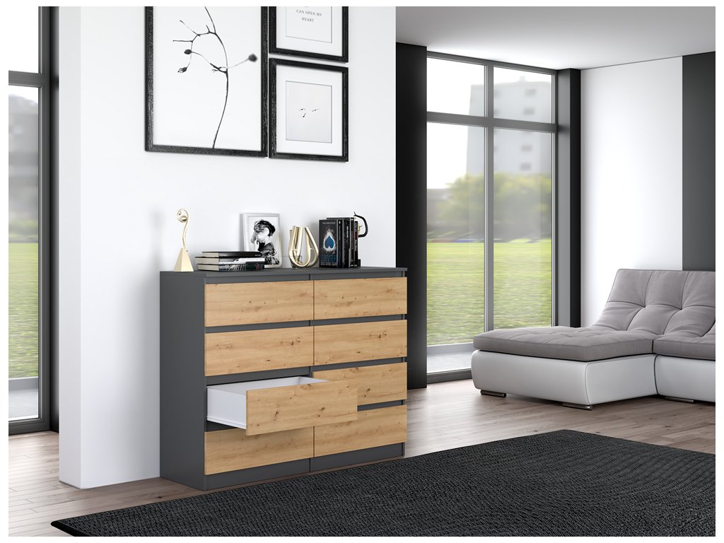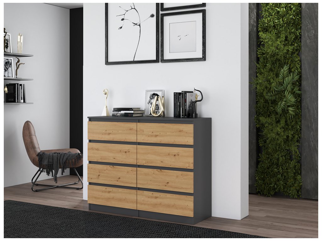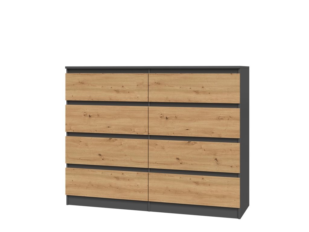 Nadčasová komoda Malvína v minimalistickém designu nabízí díky svému provedení dostatek úložného prostoru a univerzální použití v kterékoliv místnosti vašeho bytu či domu. Bezúchytková čela zásuvek zajistí pohodlné používání a dokreslí moderní a útulný charakter vašeho interiéru. Komoda je vyrobena ze snadno udržovatelného lamina, hrany jsou zakončené vysoce odolným ABS materiálem.