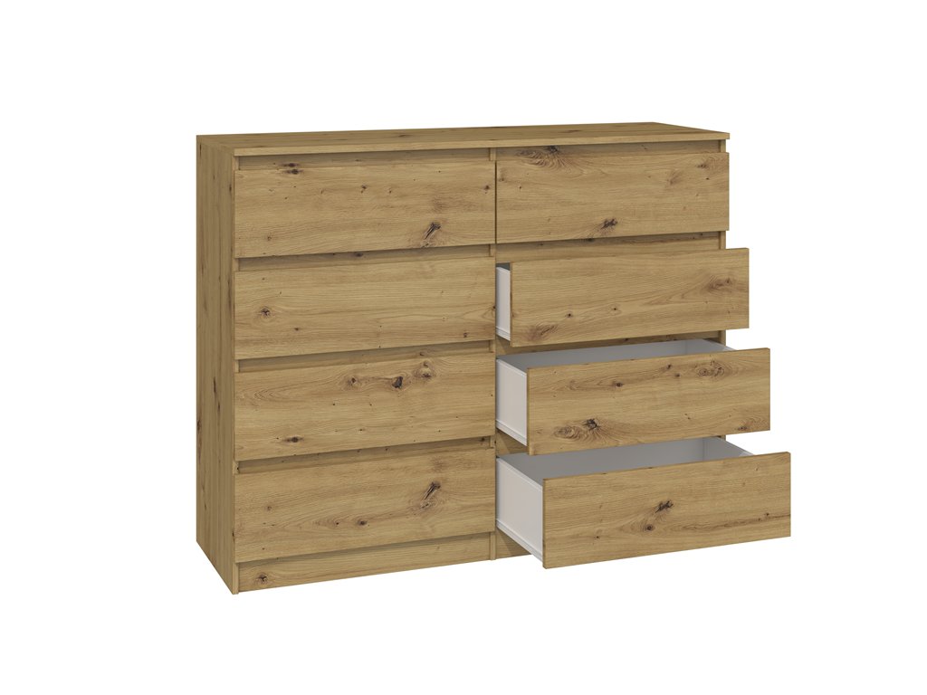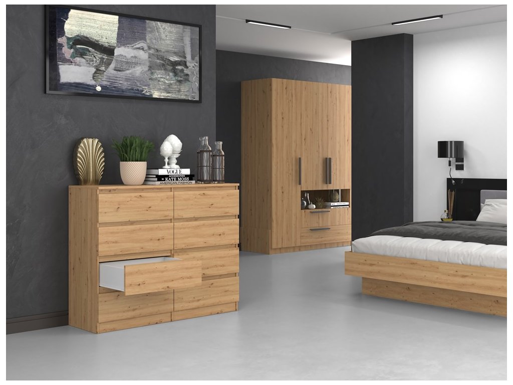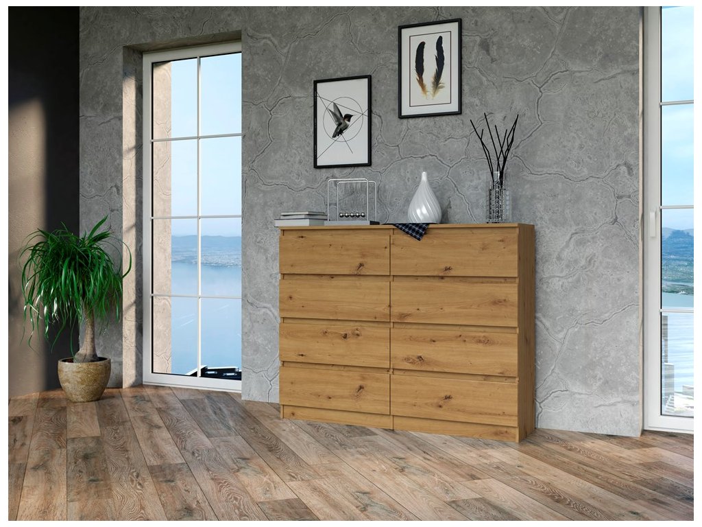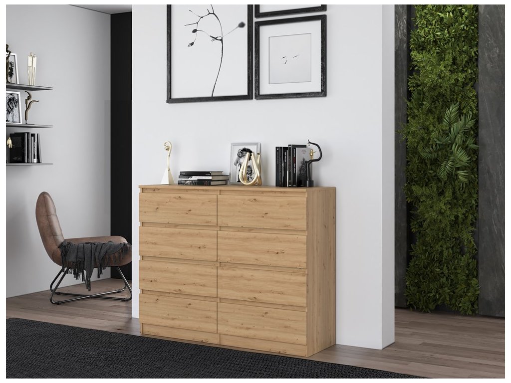 Nadčasová komoda Malvína v minimalistickém designu nabízí díky svému provedení dostatek úložného prostoru a univerzální použití v kterékoliv místnosti vašeho bytu či domu. Bezúchytková čela zásuvek zajistí pohodlné používání a dokreslí moderní a útulný charakter vašeho interiéru. Komoda je vyrobena ze snadno udržovatelného lamina, hrany jsou zakončené vysoce odolným ABS materiálem.