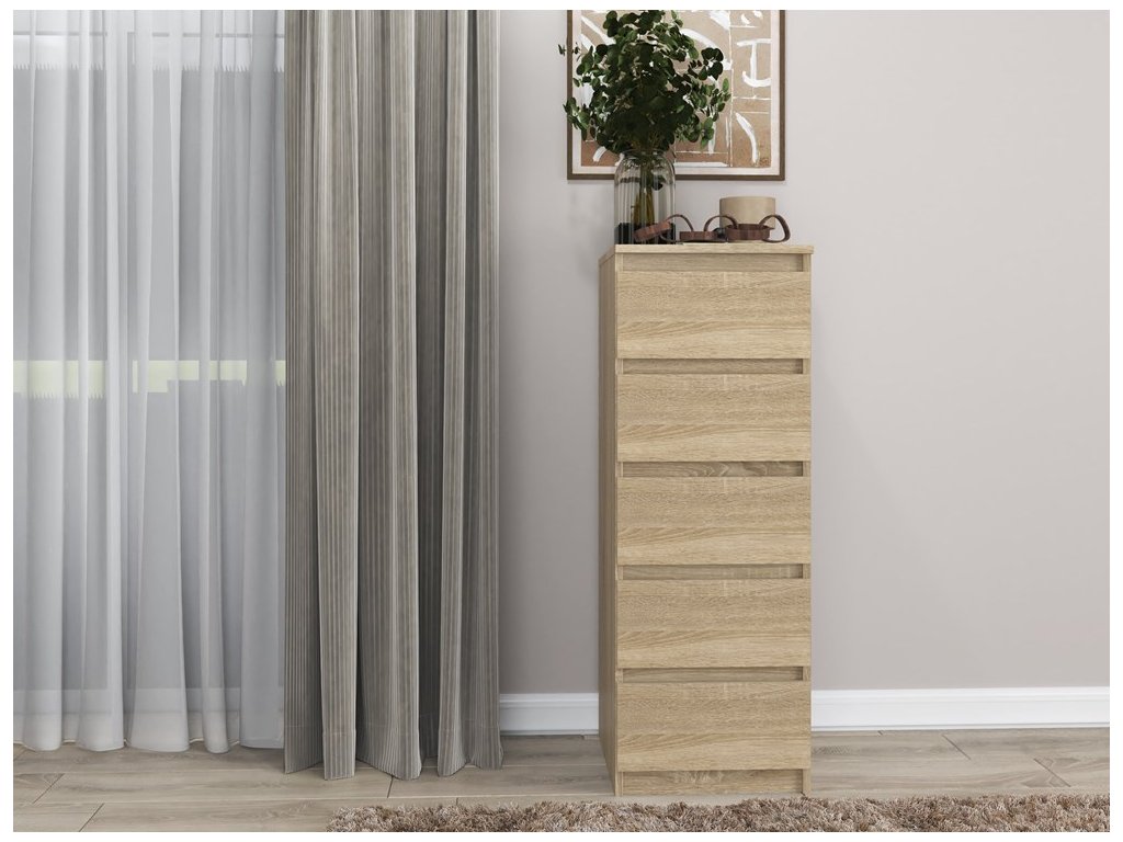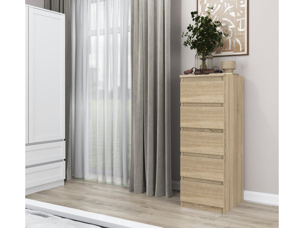 Nadčasová komoda Malvína v minimalistickém designu nabízí díky svému provedení dostatek úložného prostoru a univerzální použití v kterékoliv místnosti vašeho bytu či domu. Bezúchytková čela zásuvek zajistí pohodlné používání a dokreslí moderní a útulný charakter vašeho interiéru. Komoda je vyrobena ze snadno udržovatelného lamina, hrany jsou zakončené vysoce odolným ABS materiálem.