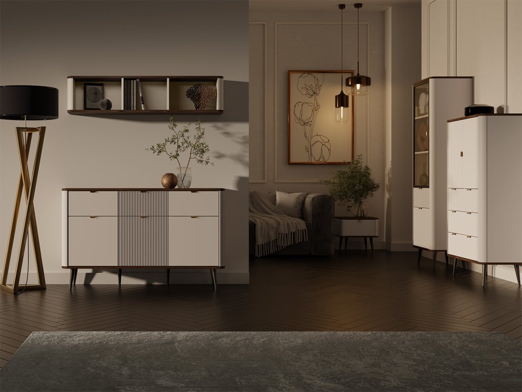 Moderní provedení sektoru Marly, který vyniká především drážkovanými prvky a vysokými nožkami je určen pro ty , kteří oceňují světlo, eleganci a funkčnost. Každý kus nábytku je navržen s důrazem na detail a celkově vytváří ucelený a luxusní interiér. Díky výběru dílů, sestavíte Váš pokoj přesně podle představ a potřeb. Velmi dobře se kombinuje s ostatními bytovými doplňky, které dodají místnosti útulný a příjemný vzhled a Vy se tak budete cítit bezstarostně a bezpečně.