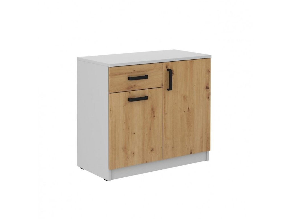 Nízká komoda Matylda 820 s dvířky a šuplíkem je vyrobena z lamina v provedení dub artisan a světle šedá. Skříňka je velmi praktická a pojme vše potřebné. Je dodávána v demontu. Součástí balení je montážní návod včetně všech spojovacích prvků.