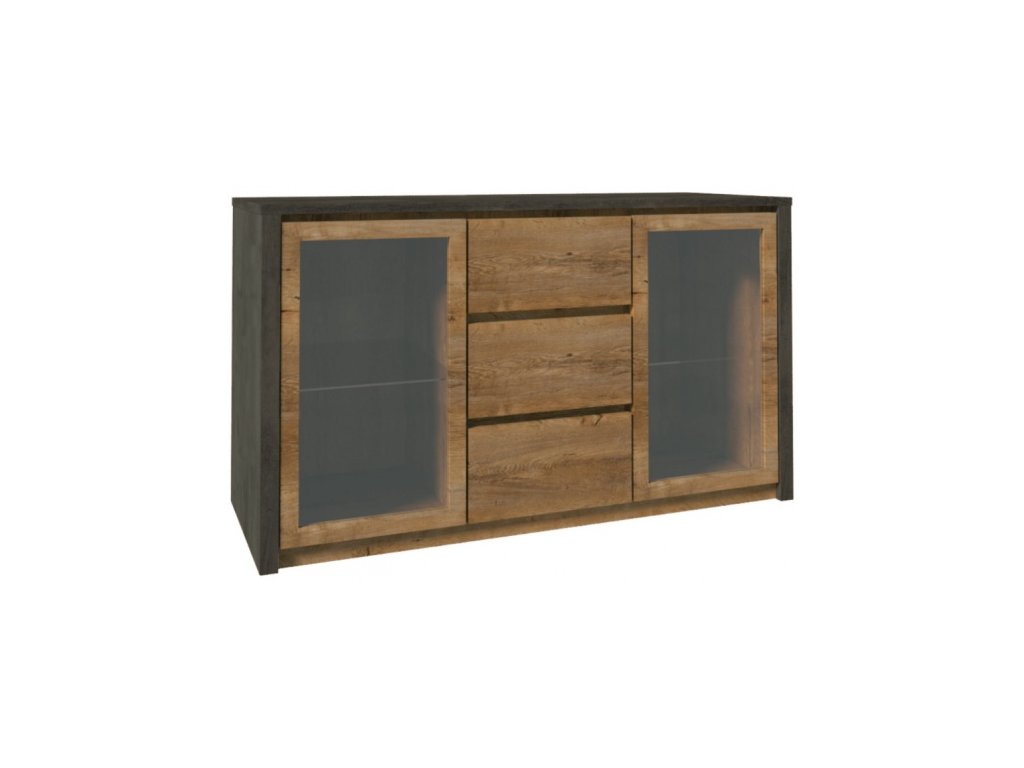 Krásně laděná kombinace je velmi elegantní a moderní formou do každého obývacího pokoje, ložnice či jídelny. Je vyrobena z laminované dřevotřísky se strukturou dřeva. Celý nábytek je bezúchytkový a proto dodá ještě více na dojmu.