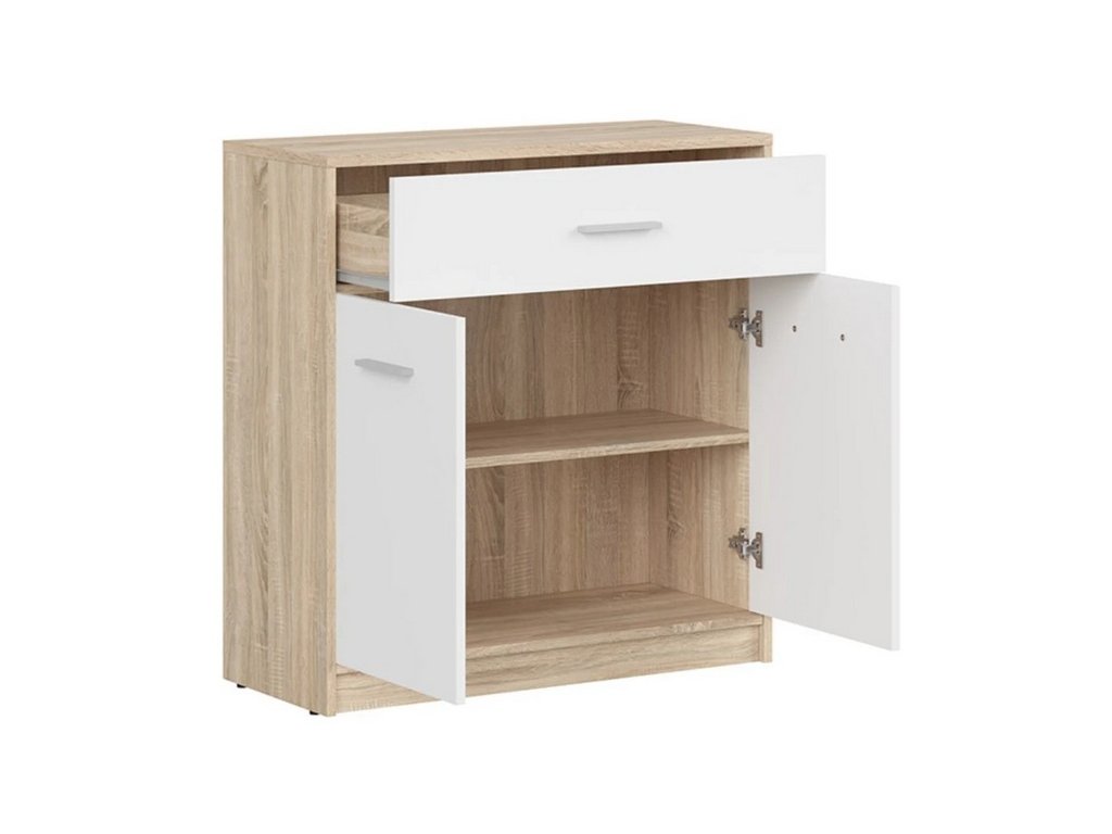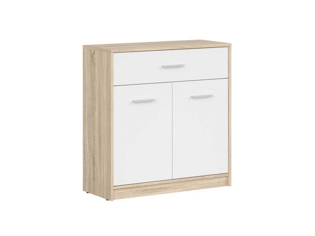 Moderní, nebo klasicky zařízený interiér? S komodou NEPO PLUS si hravě poradíte s oběma typy. Nábytek je vyroben z lamina v barevném provedení dub sonoma/bílá. Úložný prostor je v podobě zásuvky a police uschované za dvířky. Dvířka jsou opatřena stříbrnou plastovou úchytkou. Dodáváno v demontu.